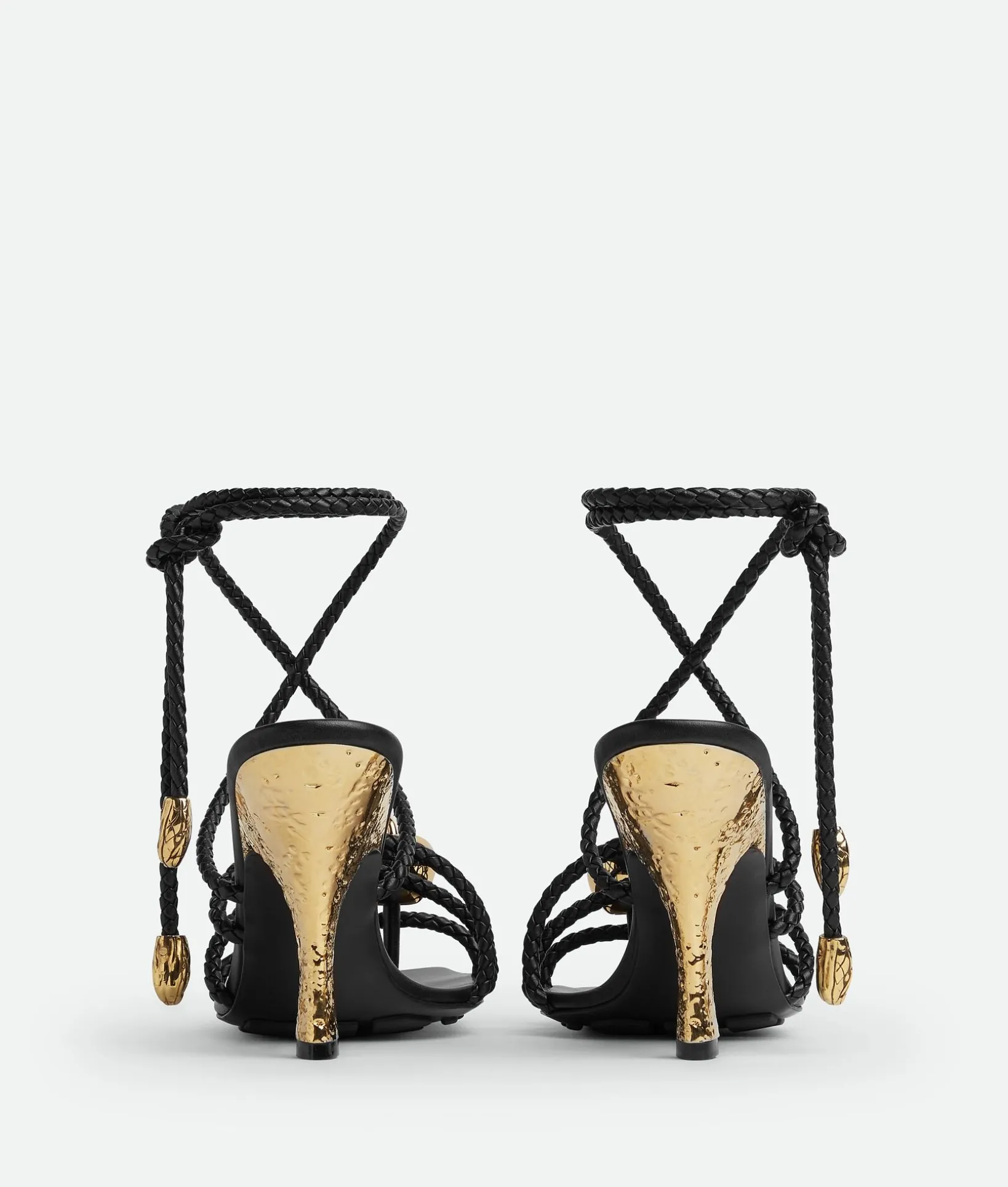 • Leather lace-up sandal with coaxial laces and galvanized embellishments