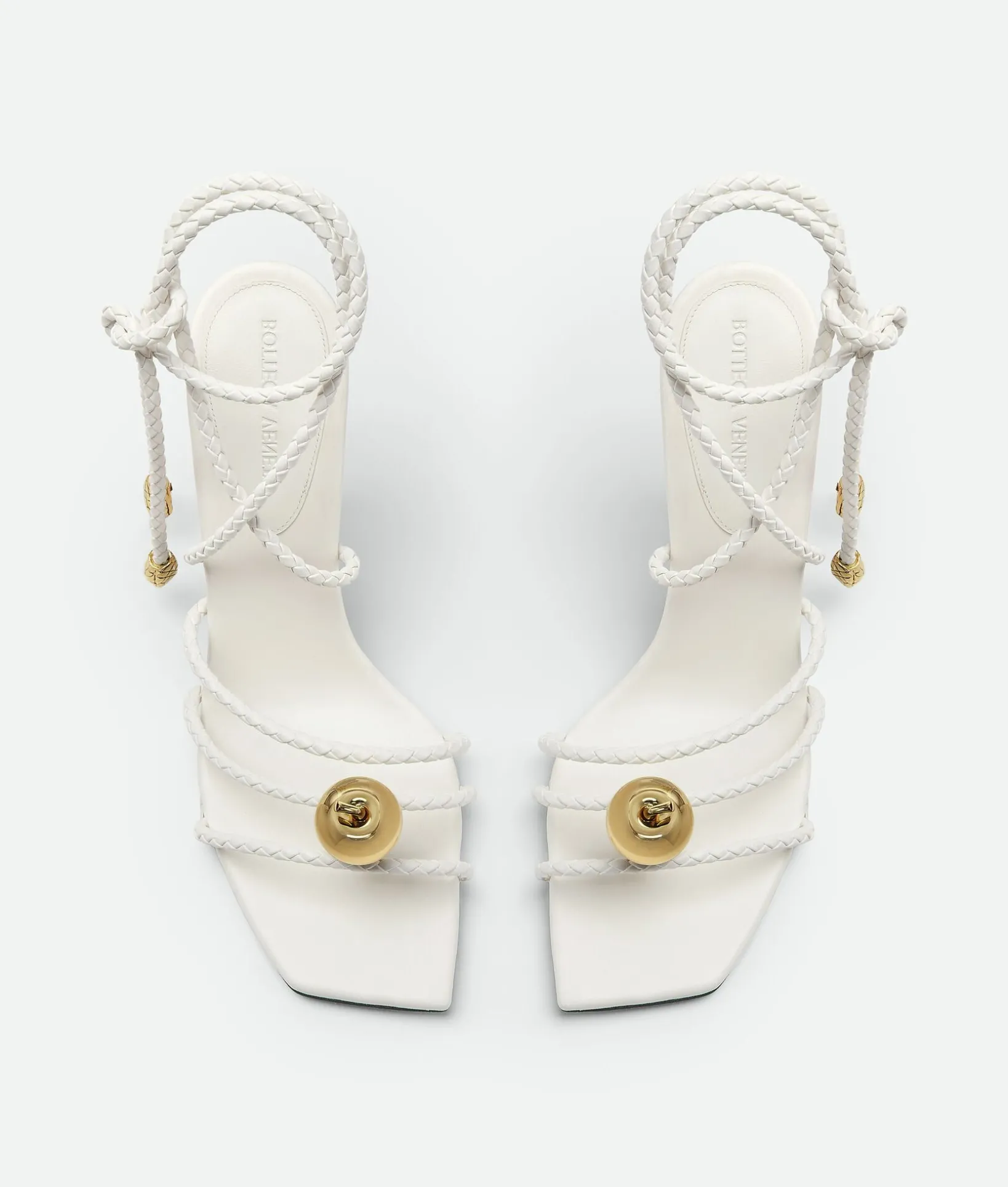 • Leather lace-up sandal with coaxial laces and galvanized embellishments