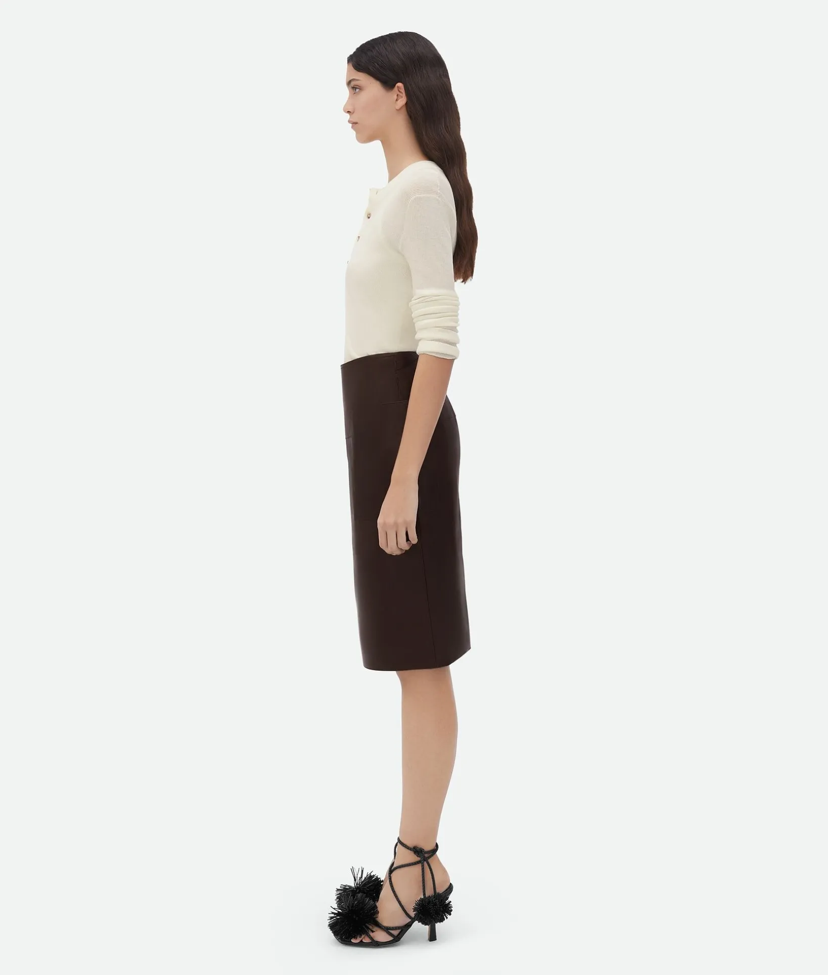 • Leather lace-up sandal with coaxial laces and pompom embellishments