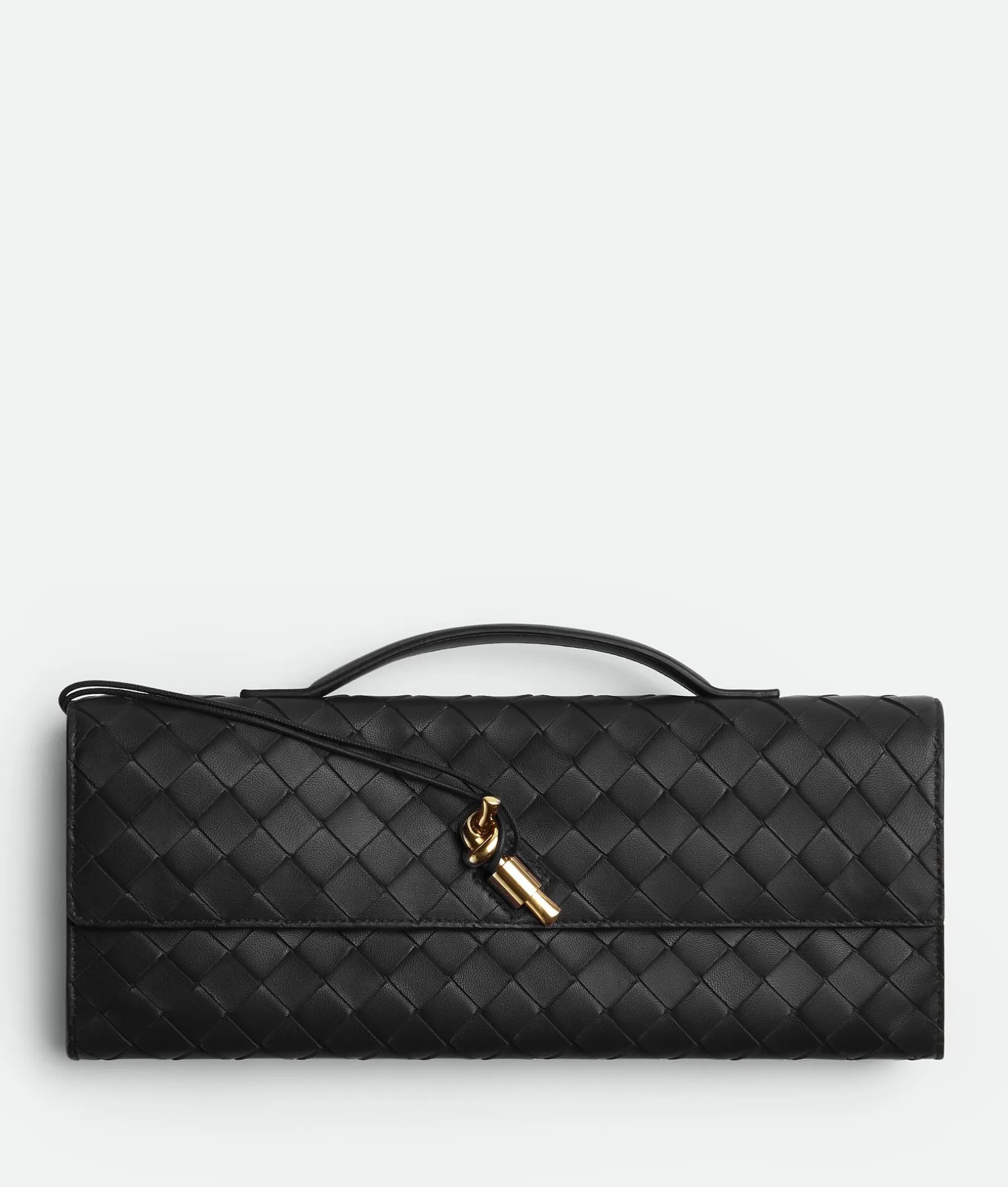 • Intrecciato leather top handle clutch with metallic knot closure
