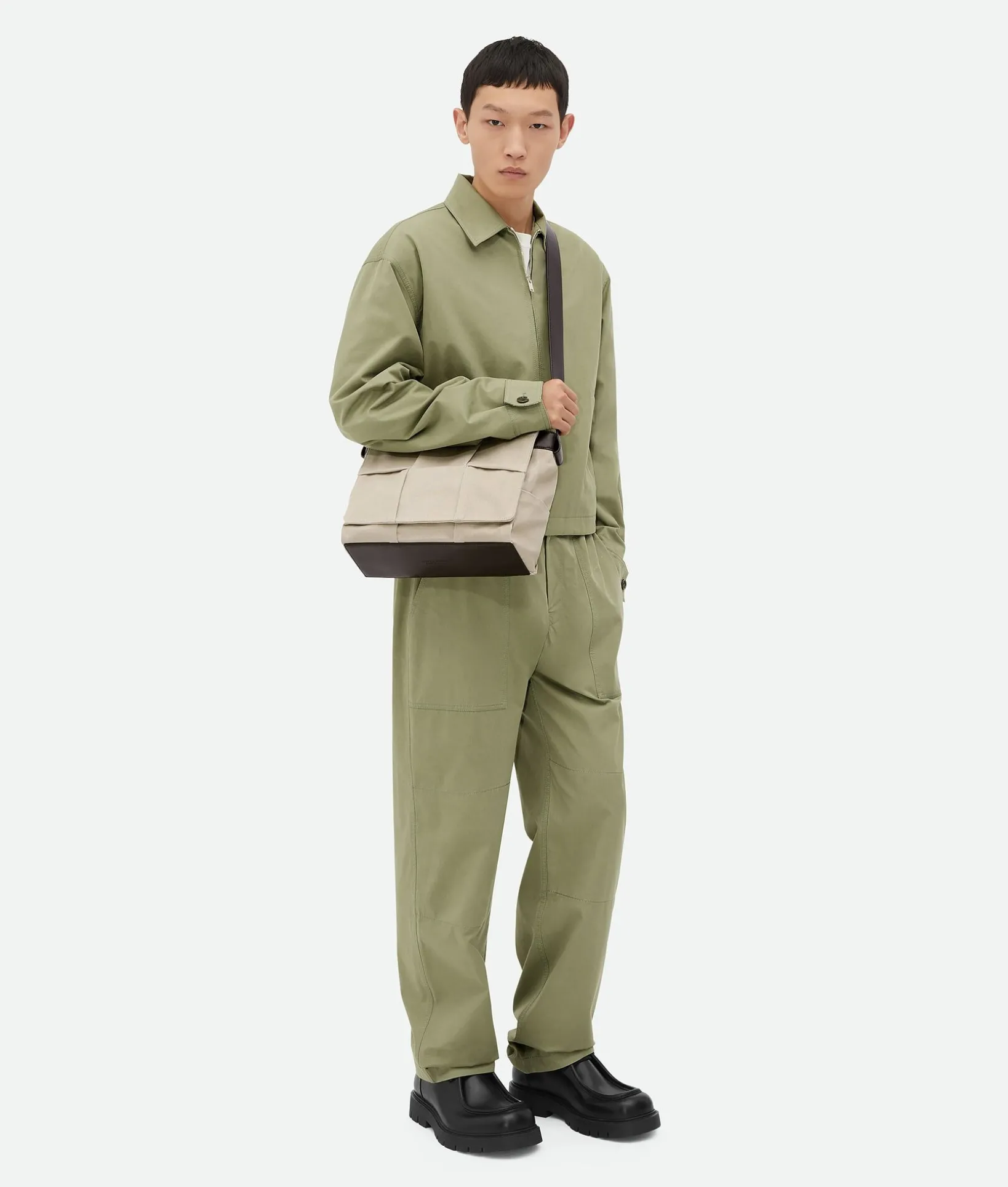 • Flap messenger in canvas pleated with Intreccio pattern