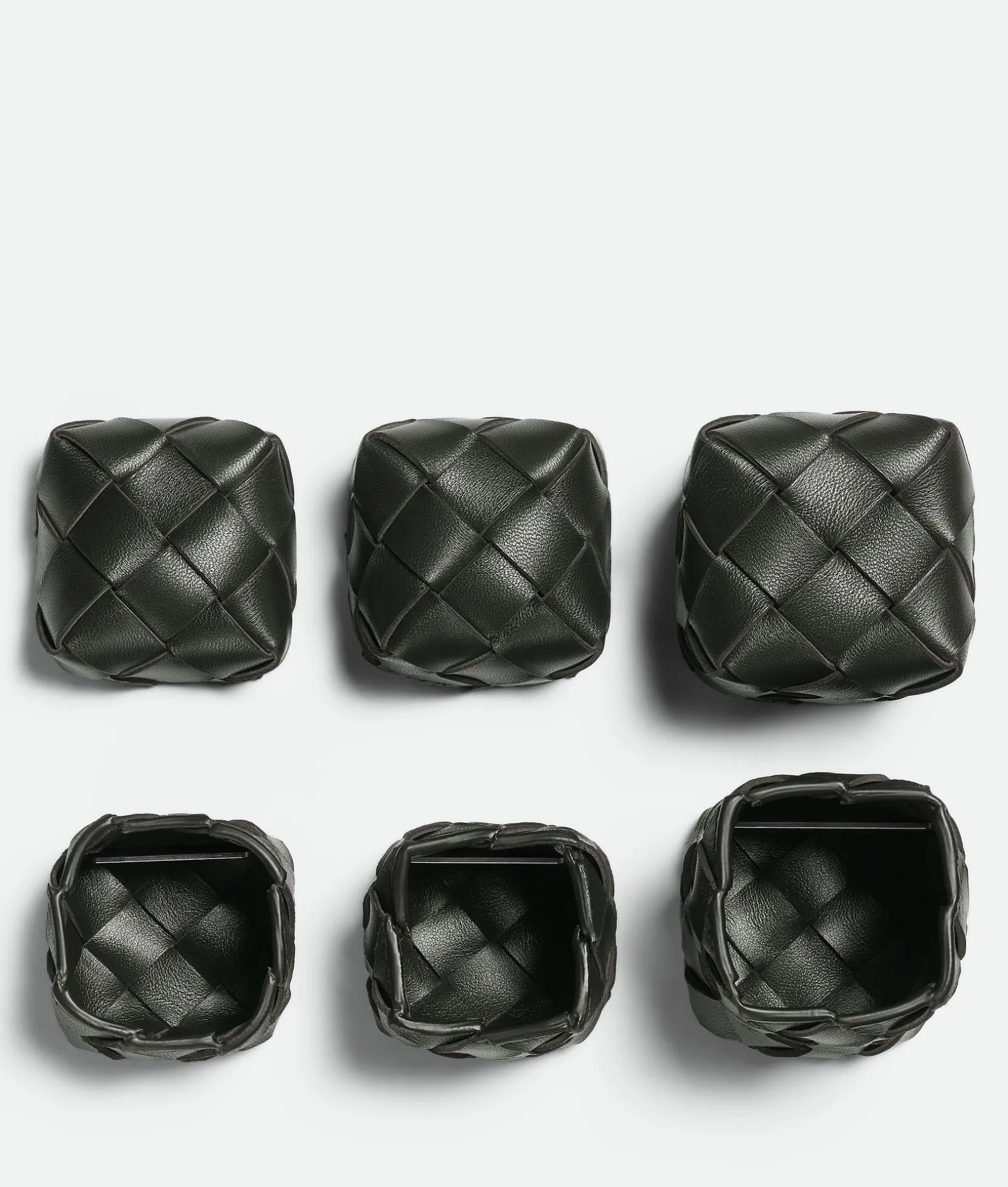 • Set of three Intreccio leather mini boxes