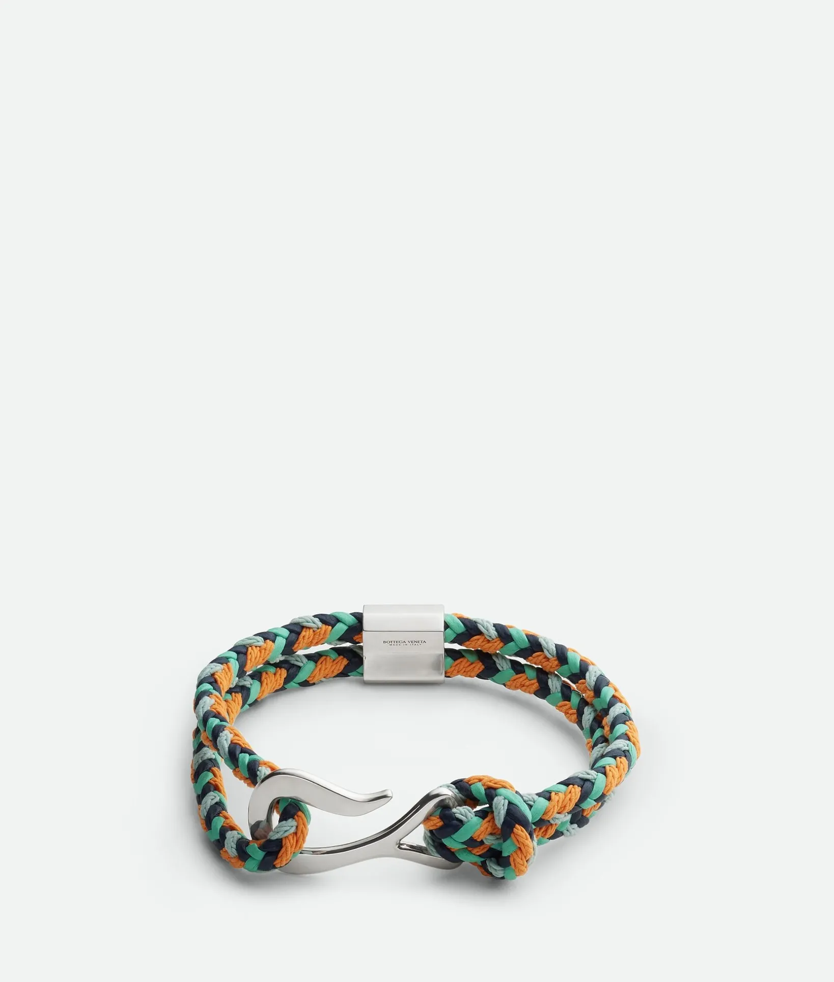 • Sterling silver leather and knitted linen bracelet