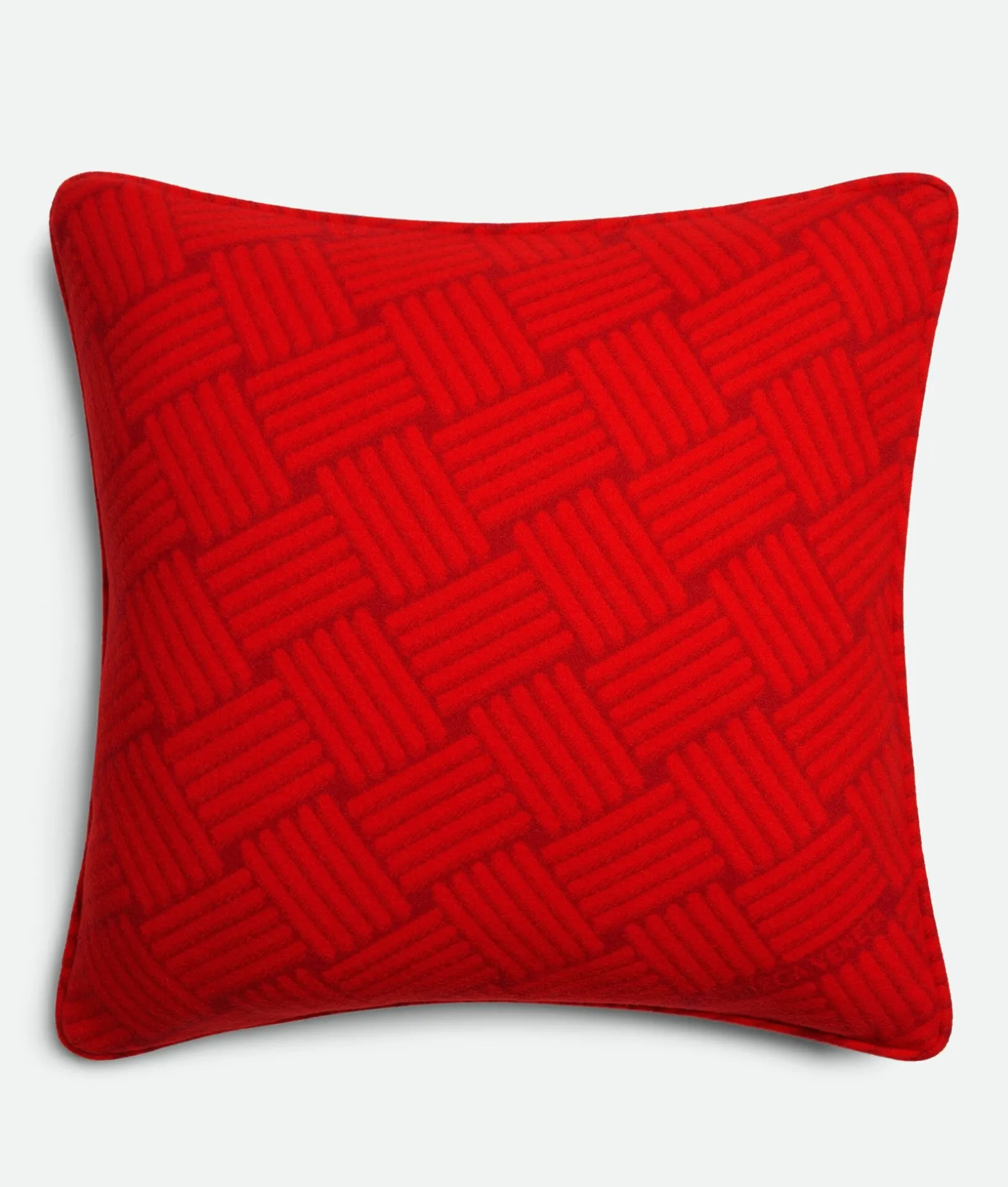• Cushion in cashmere with bicolor Intreccio jacquard pattern and fringes.