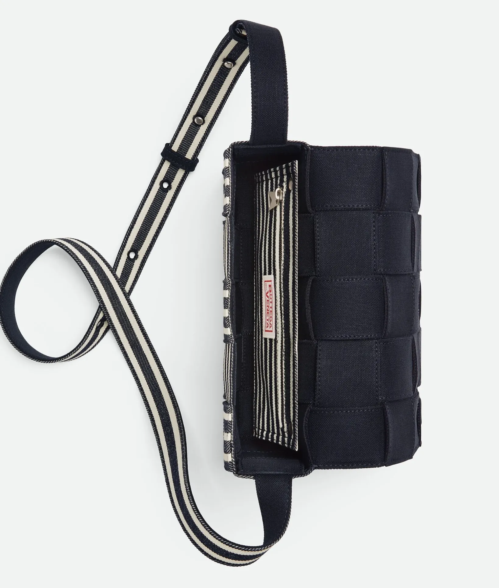 • Medium Intreccio cross/body bag in hickory striped denim