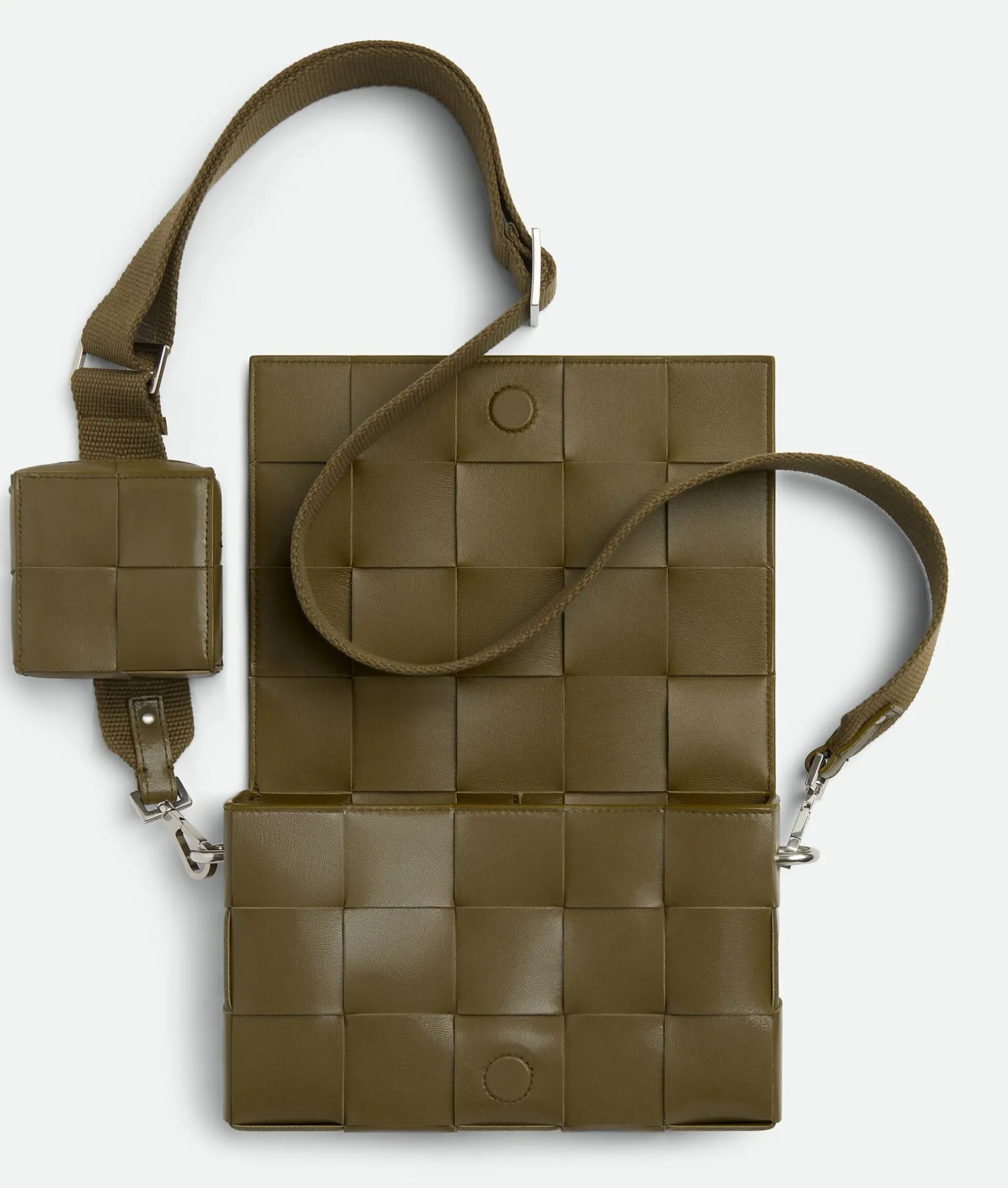 • Detachable and adjustable strap in canvas with one Intreccio leather slide-on zippered pouch for AirPods