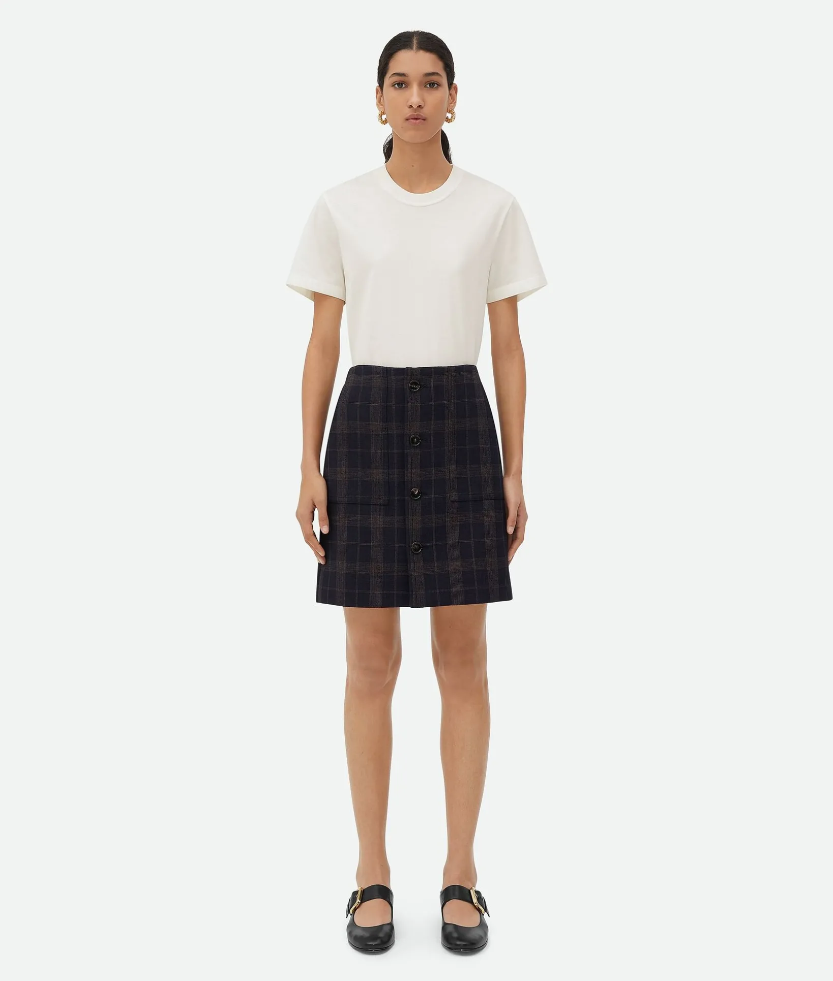 • Structured checked cotton mouline midi skirt