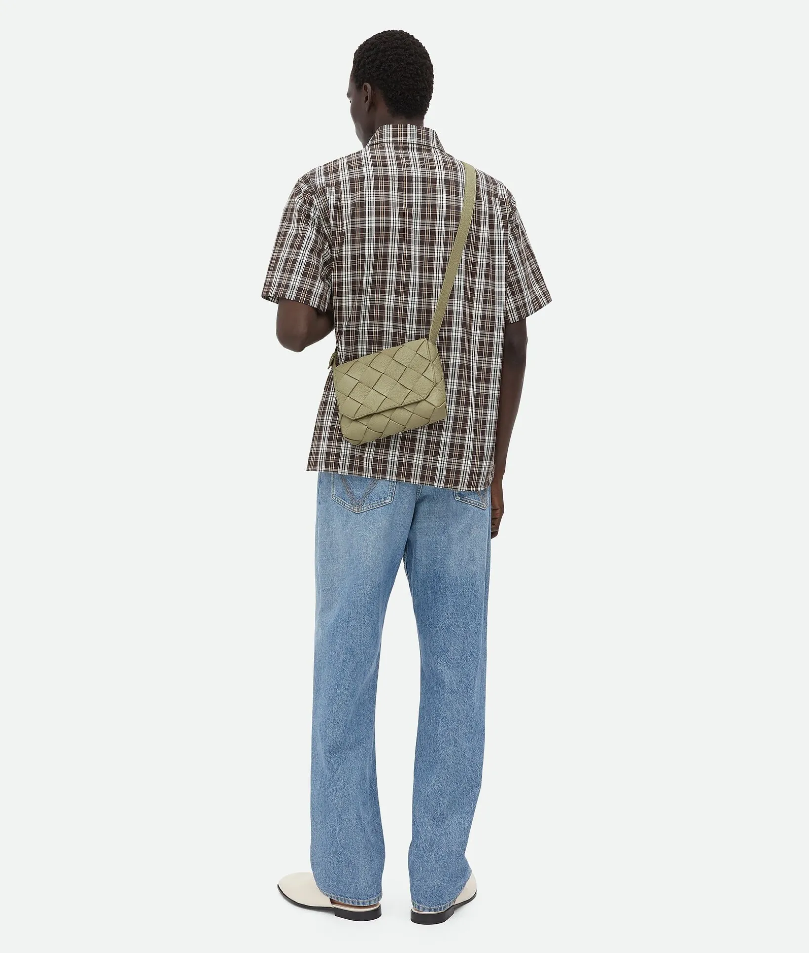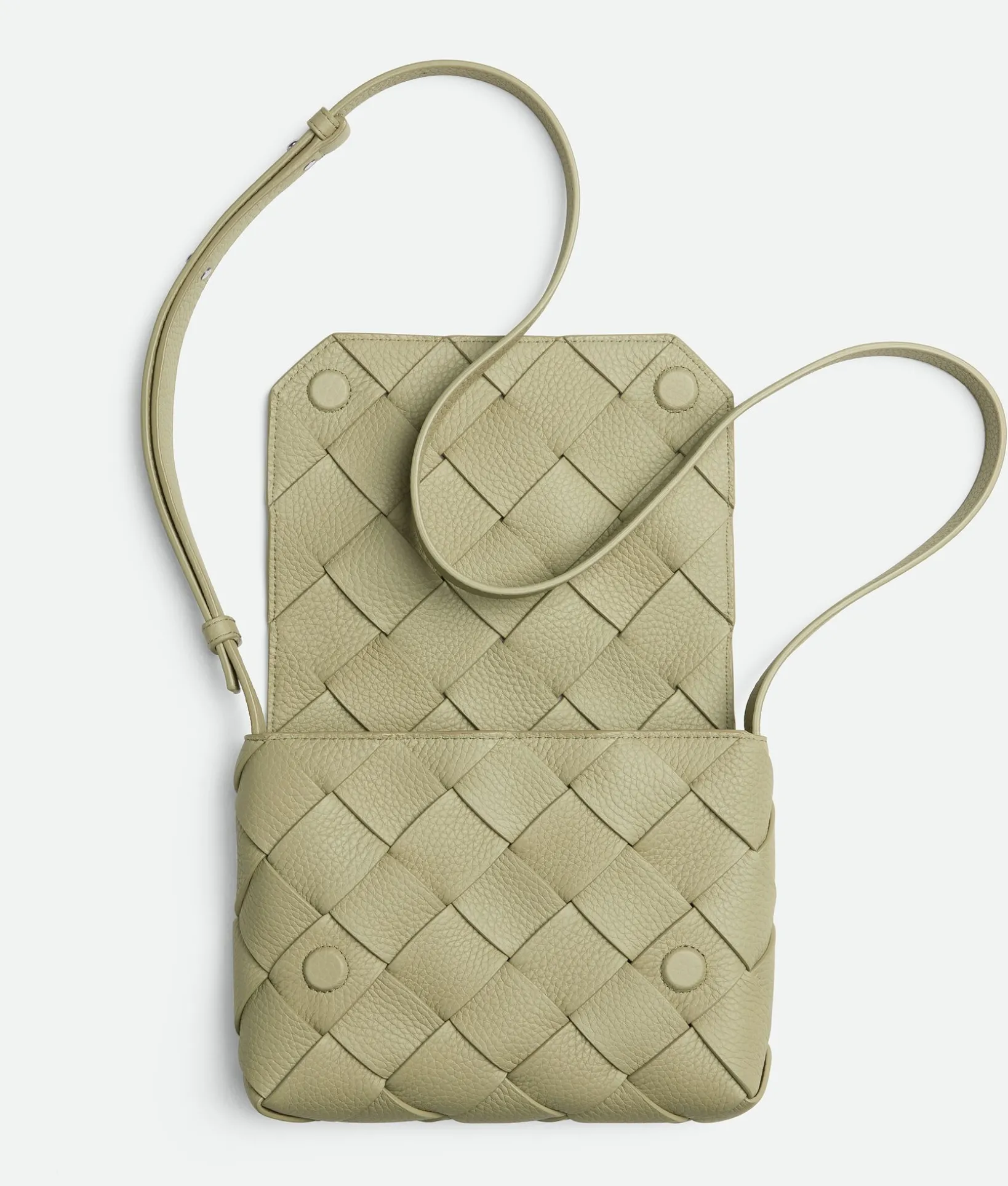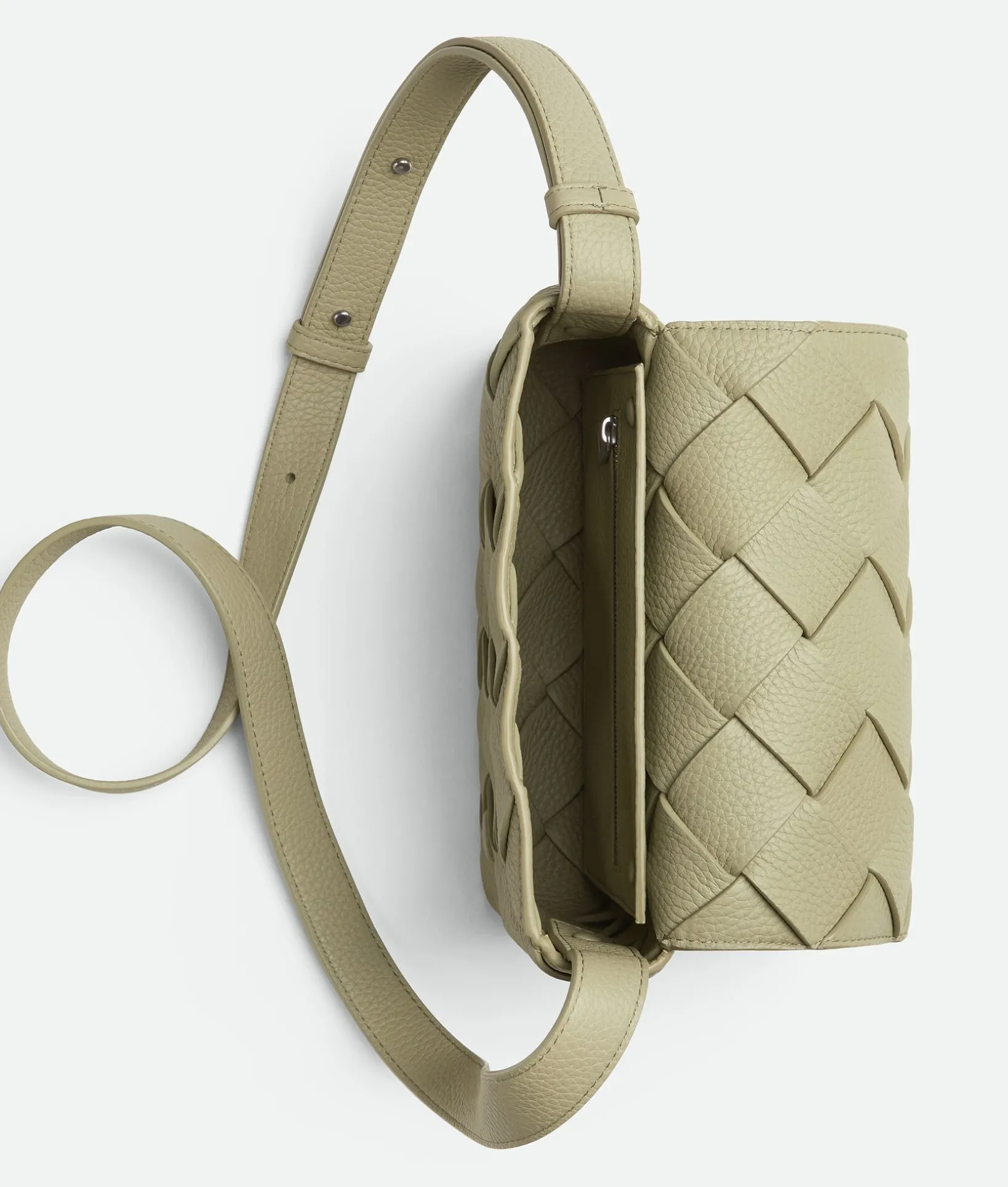 • Grained Intreccio leather cross-body bag with adjustable strap