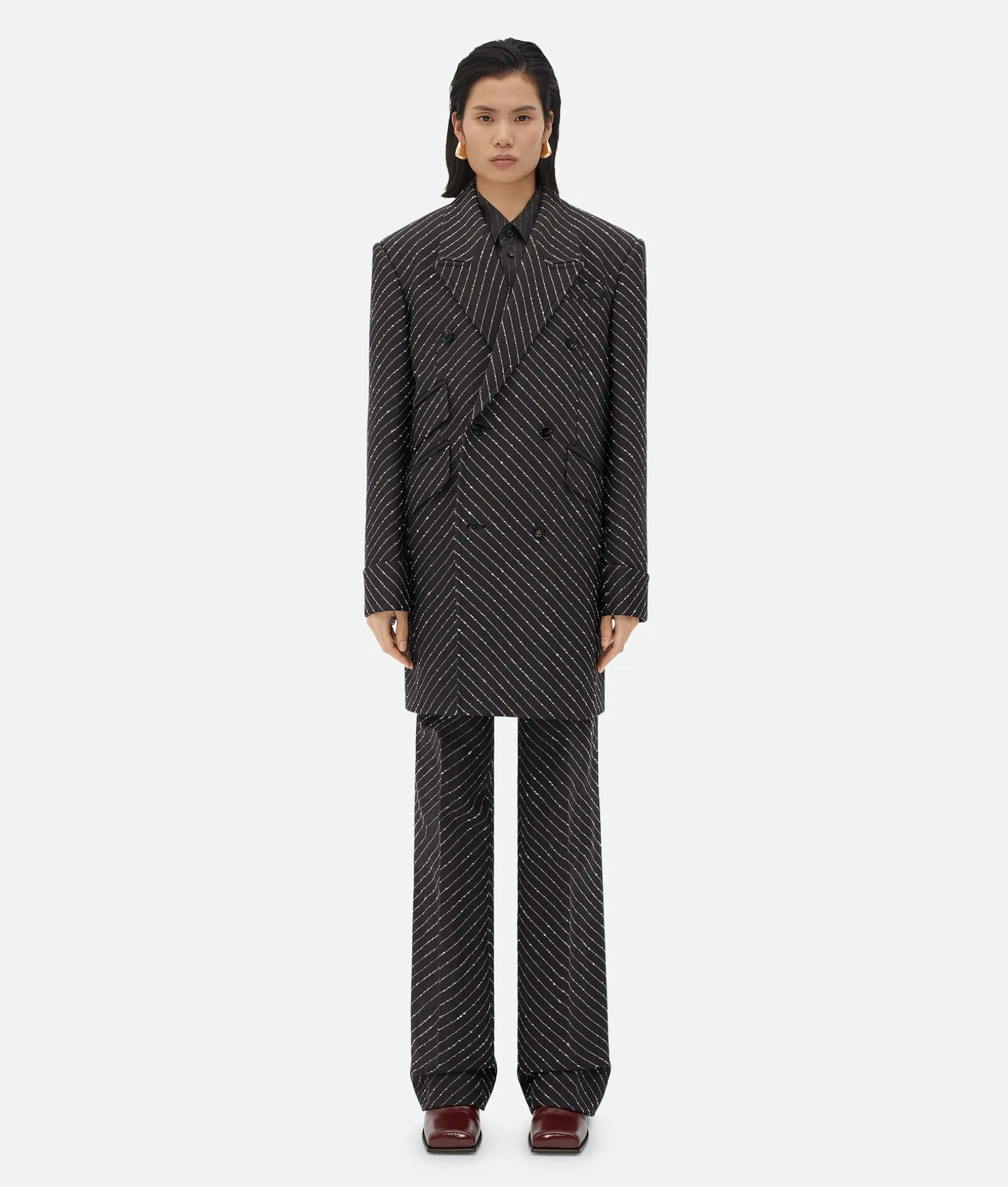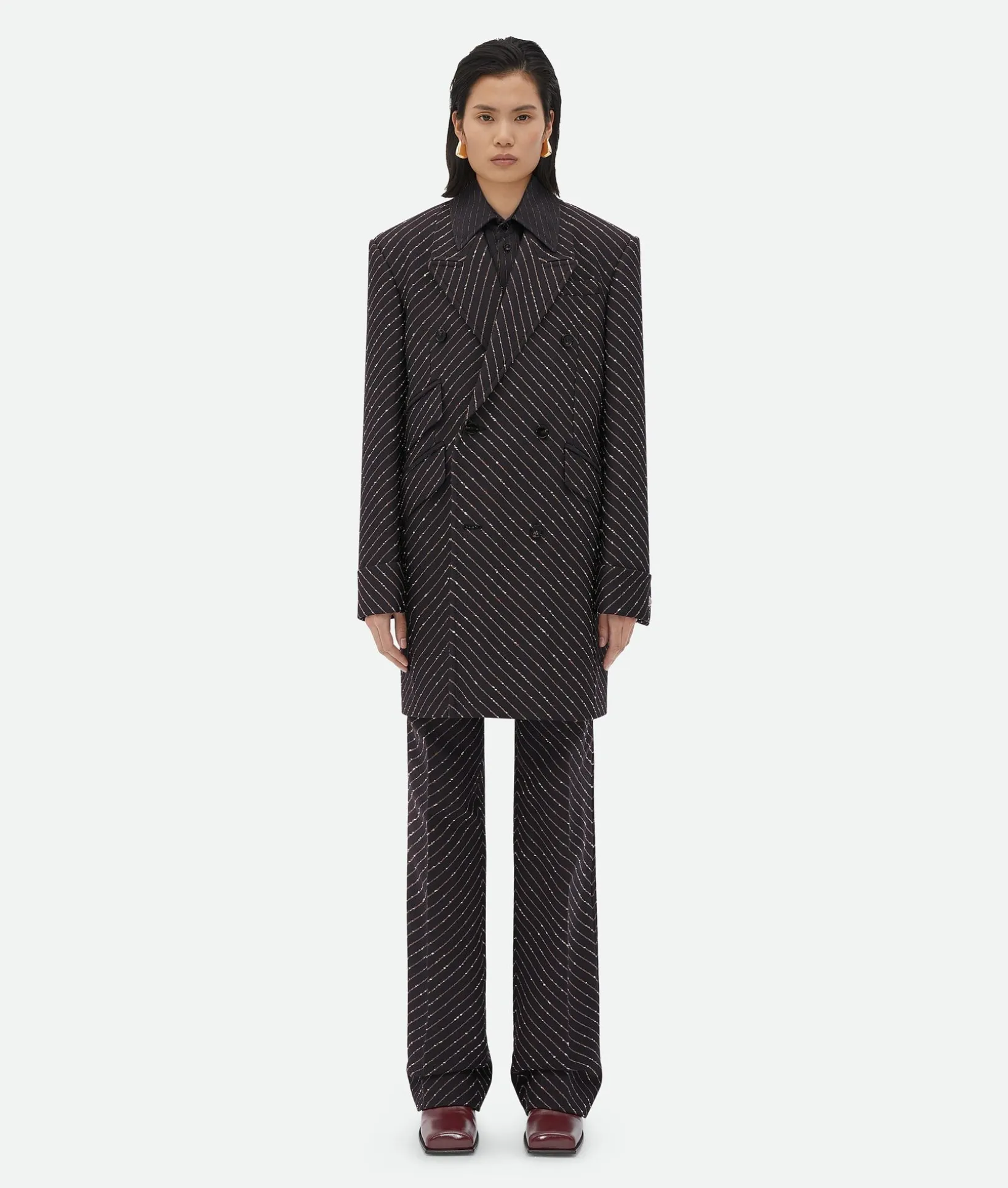 • Diagonal boucle pinstripe coat
