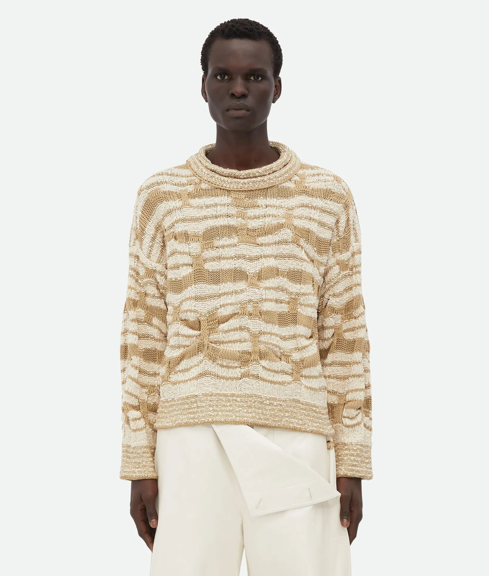 • Distorted stripe cotton crew neck jumper
