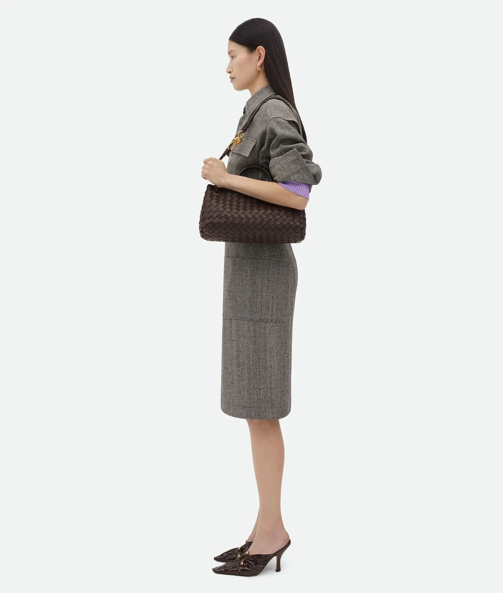 • East-West Intrecciato leather top handle bag with sliding cross-body strap