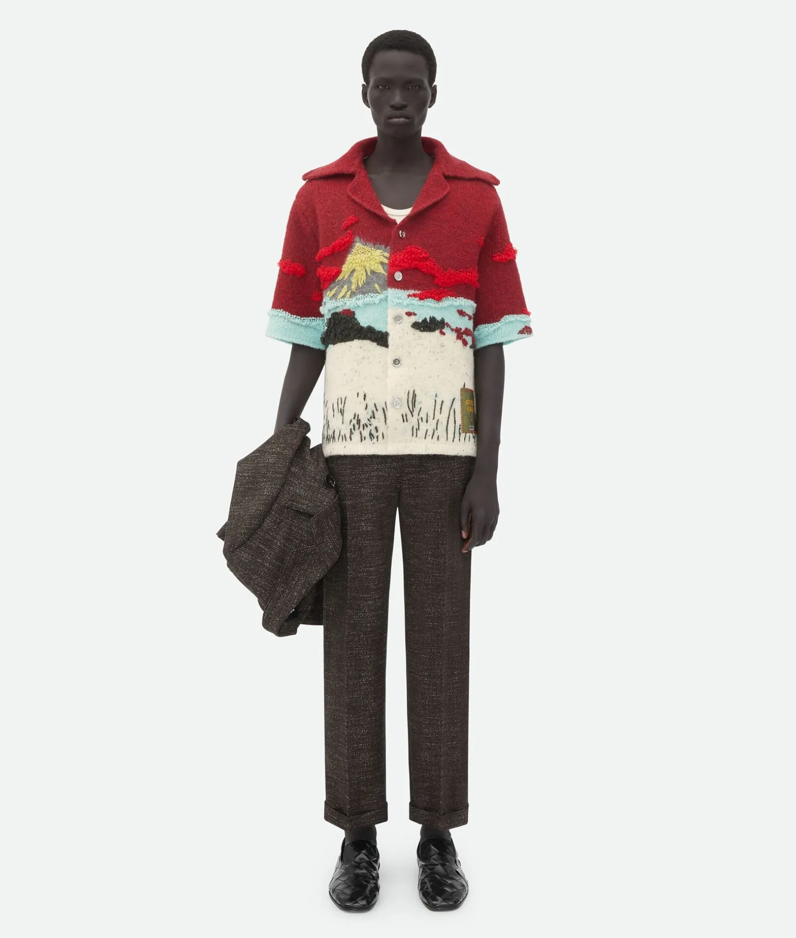 • Embroidered intarsia wool shirt