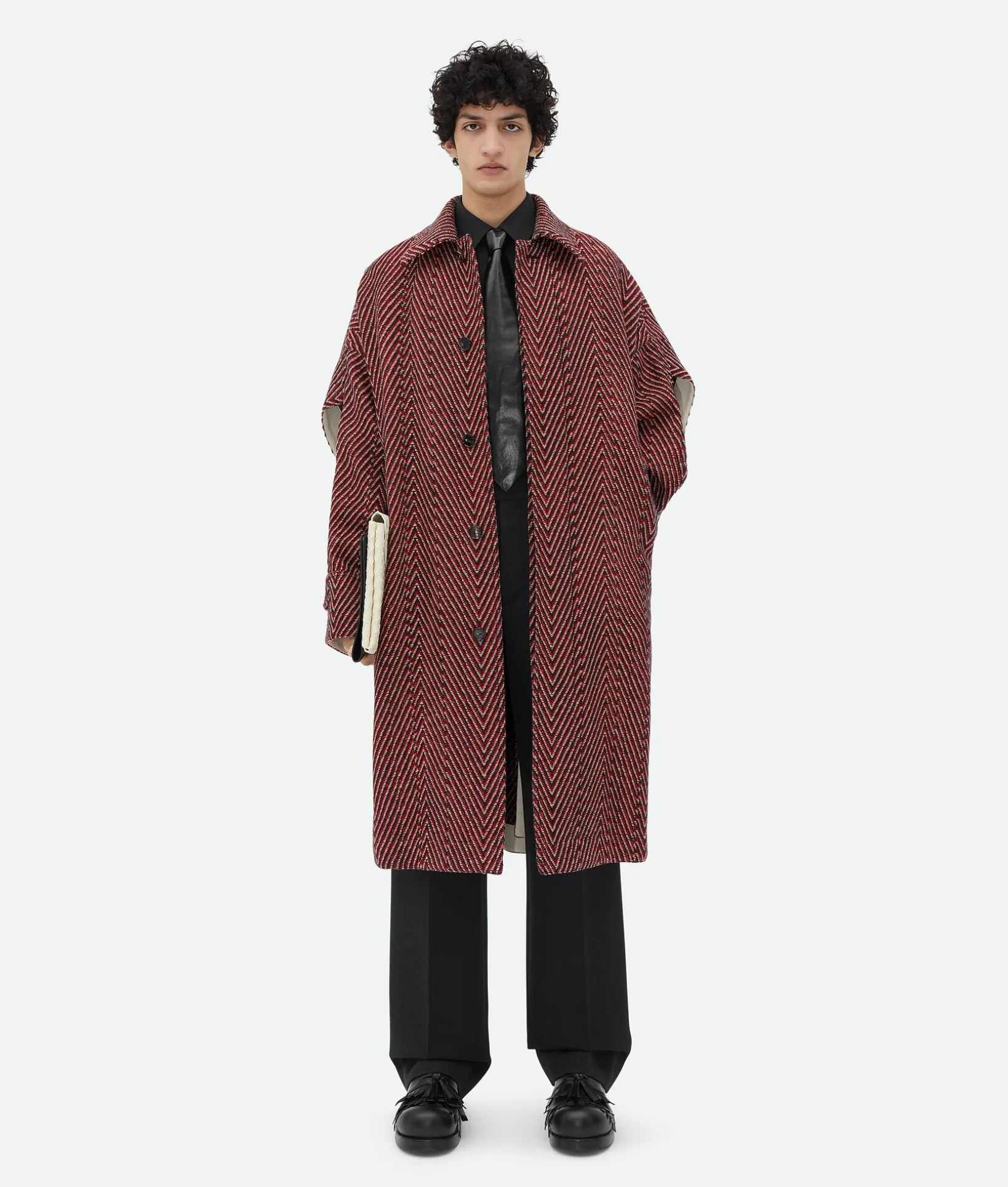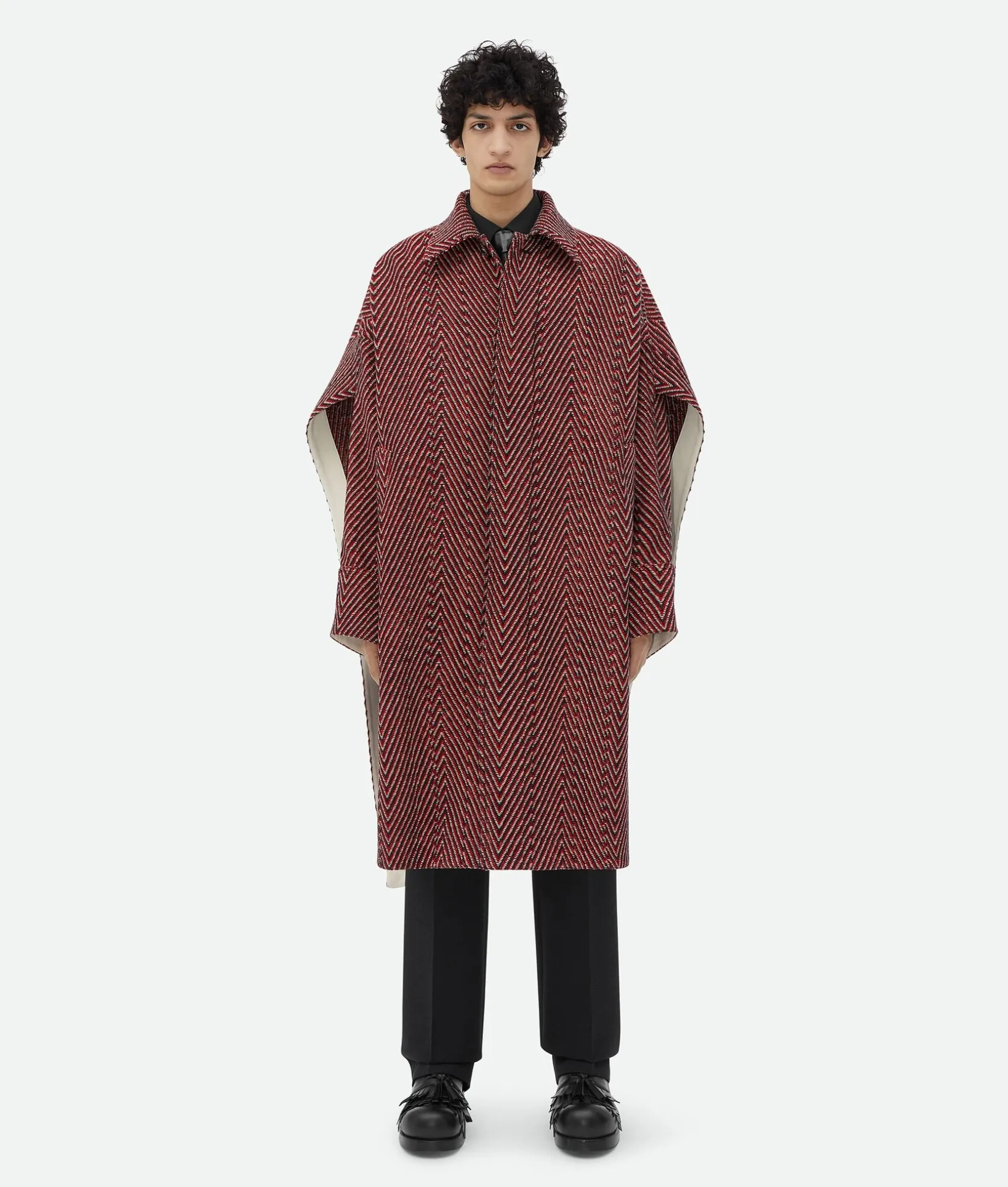 • Irregular wool chevron cape coat