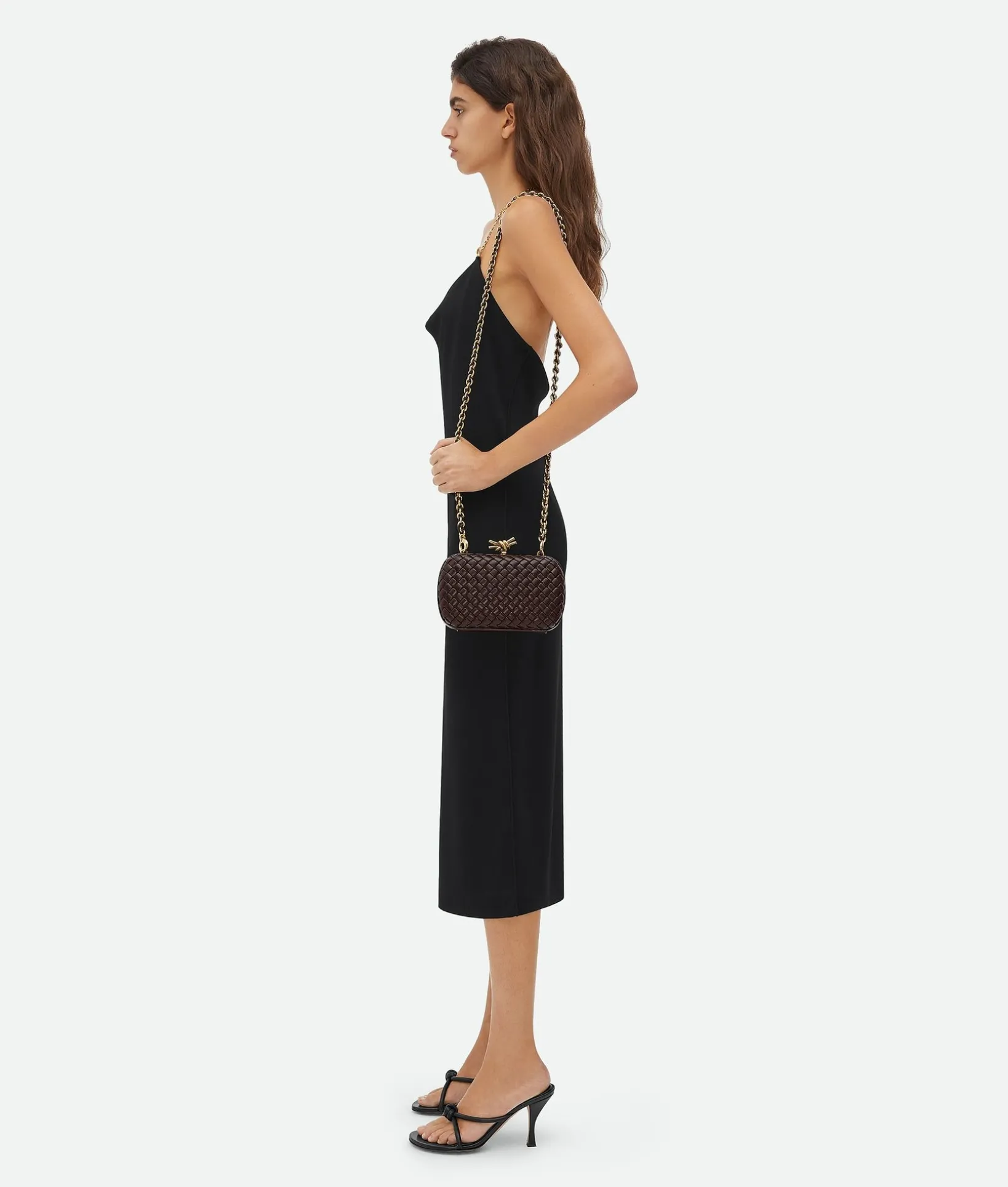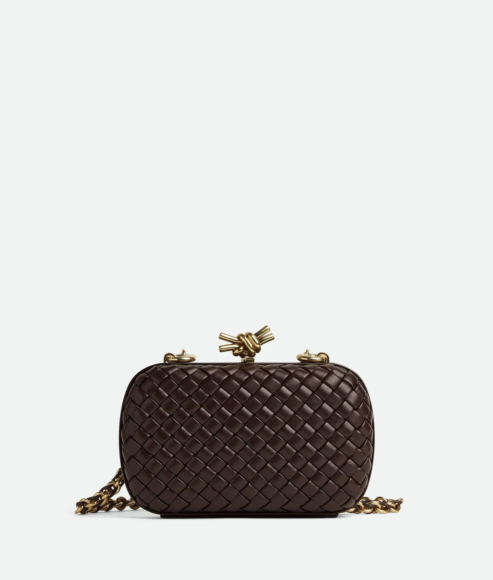 • Padded Intreccio leather minaudière with cross-body leather braided metal chain