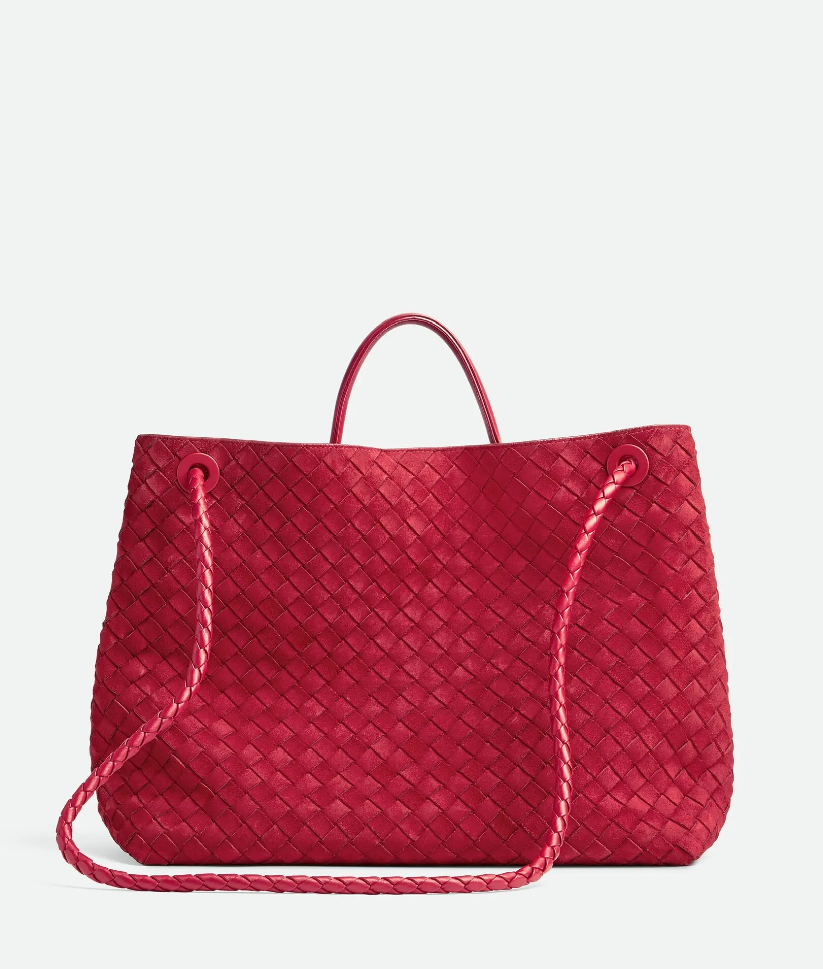• Large Intrecciato suede top handle bag with sliding cross-body strap