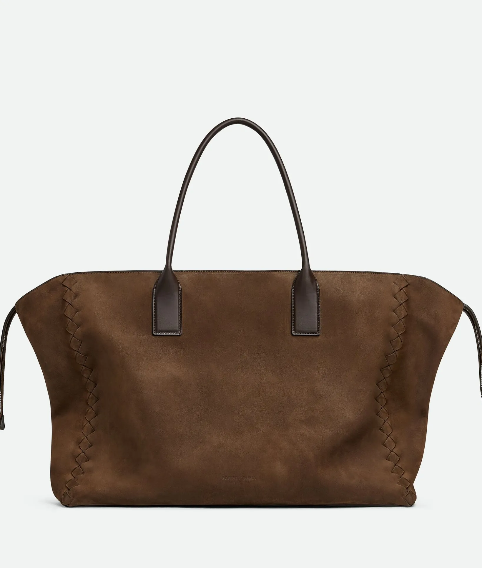 • Smooth nubuck zipped tote bag with calfskin handles and Intrecciato details