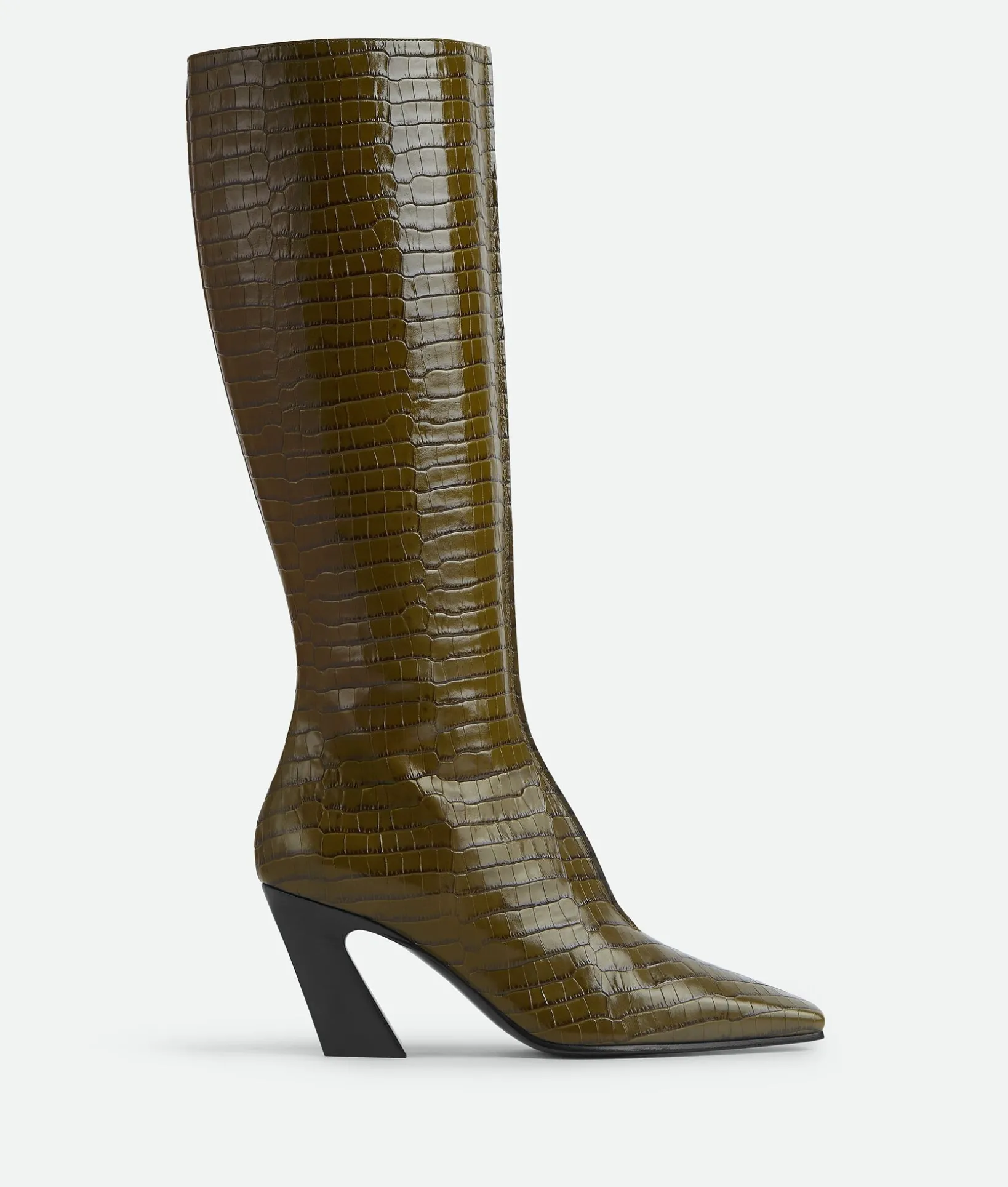 • Crocodile effect leather knee-high boot