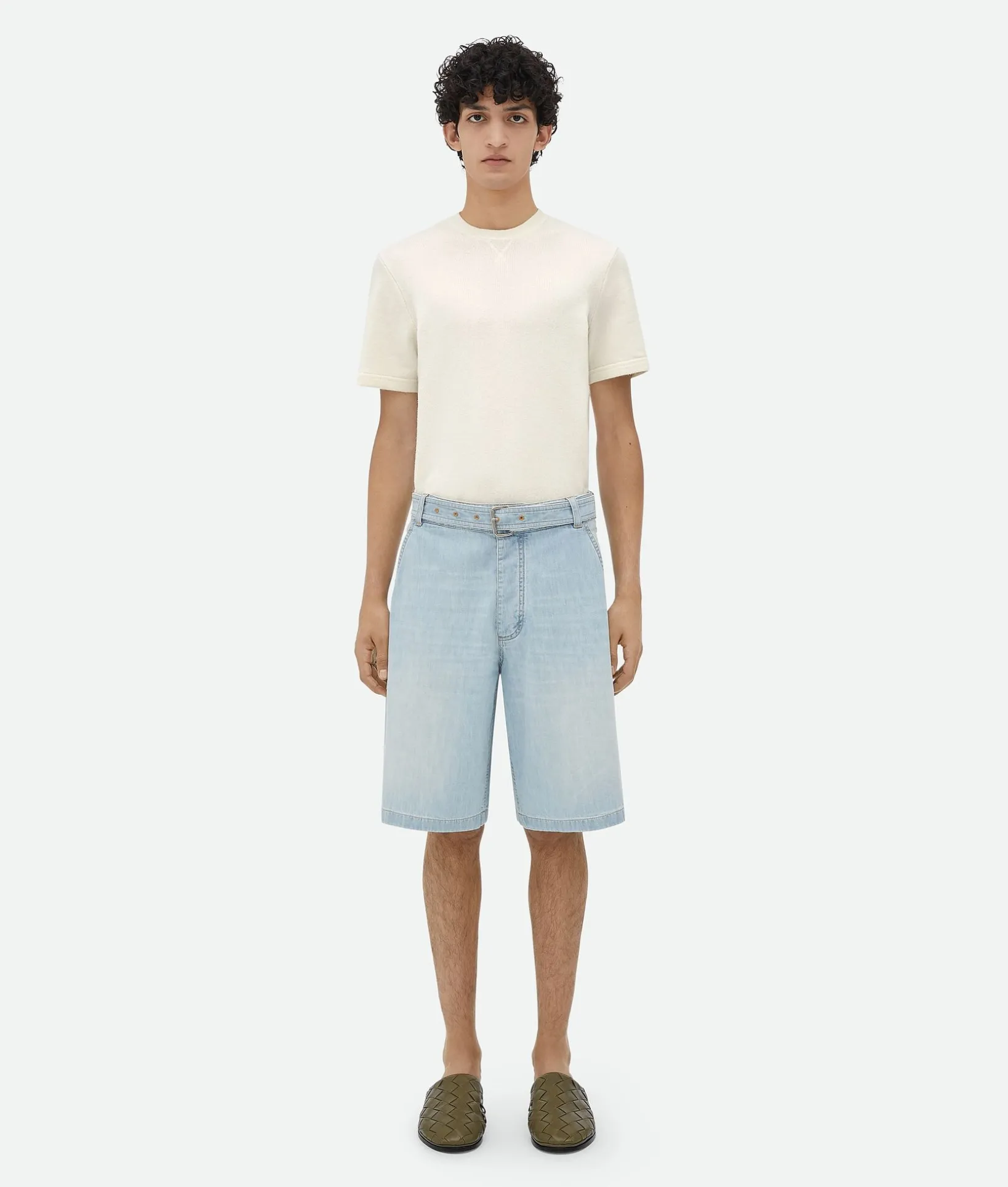 • Light bleached denim shorts