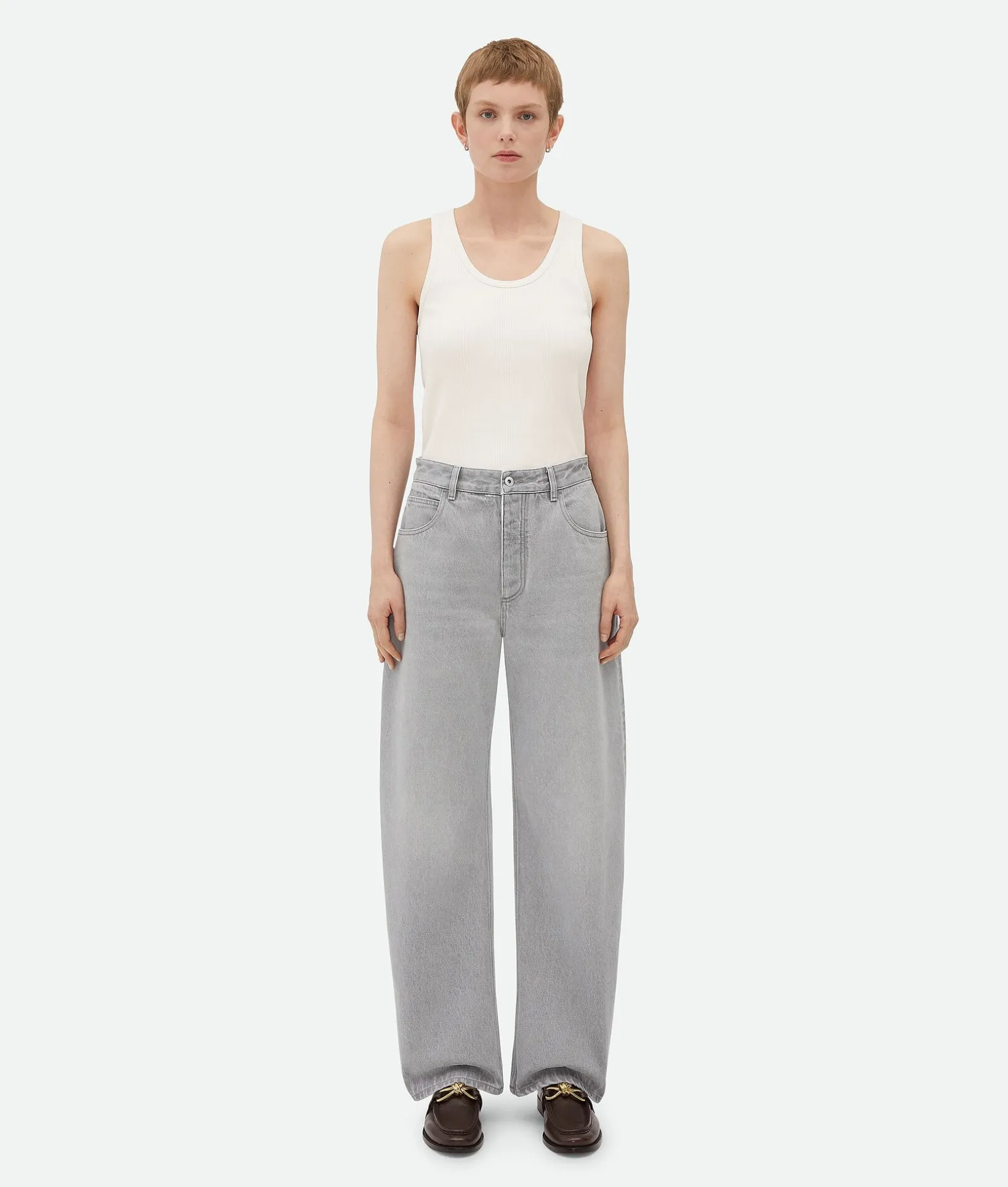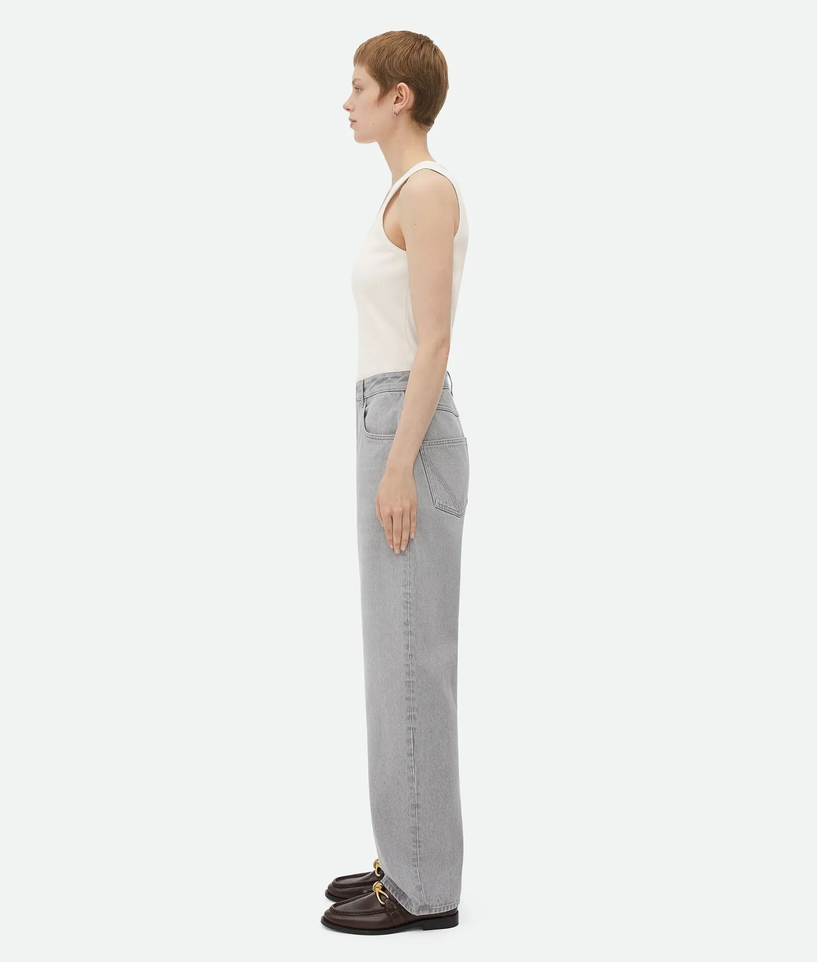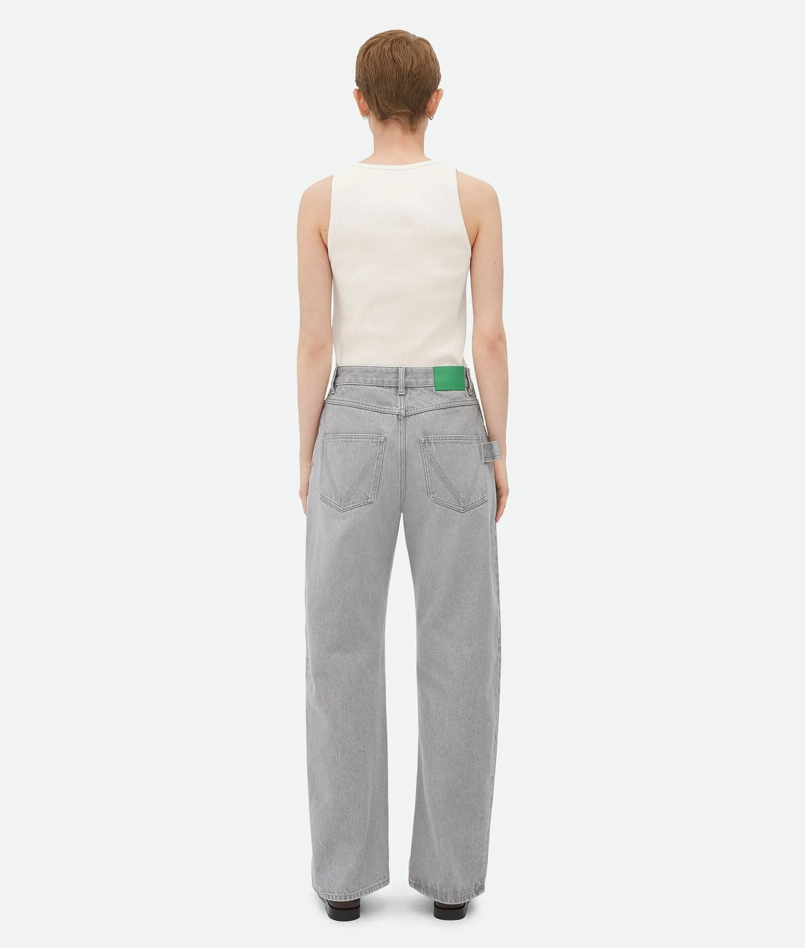 • Light grey washed denim trousers
