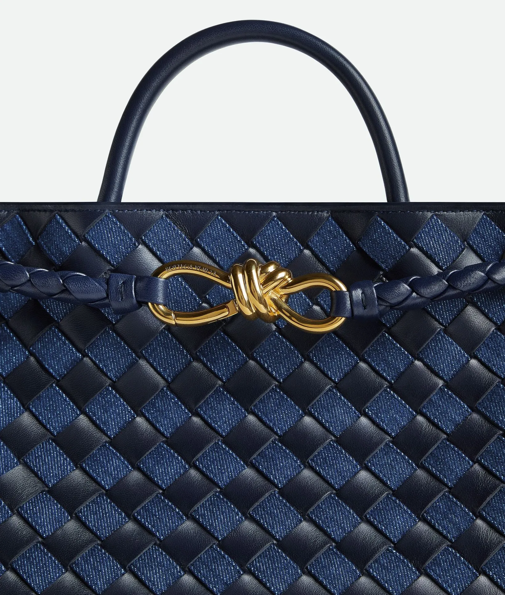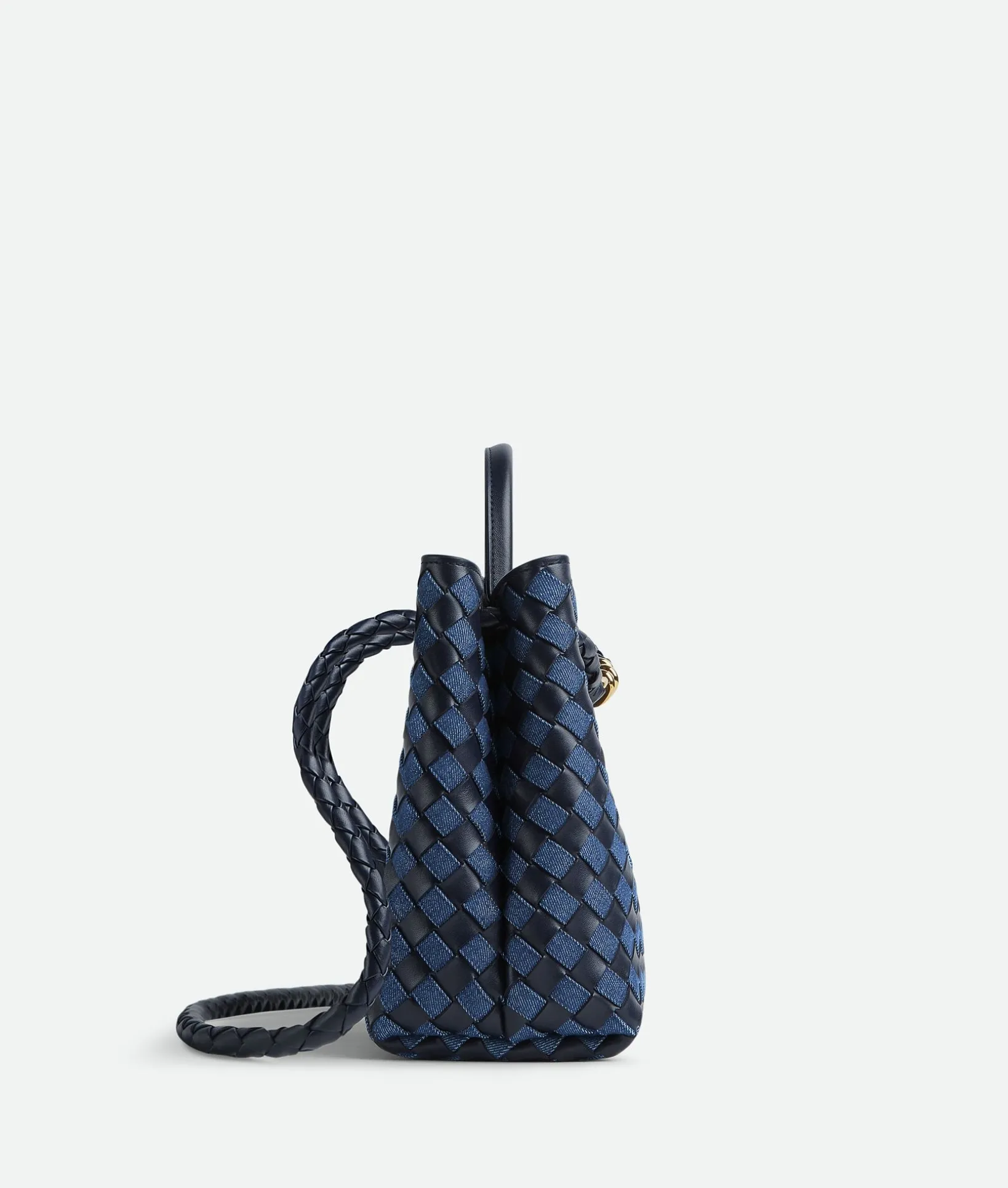 • Medium Intrecciato leather and denim top handle bag with sliding cross-body strap