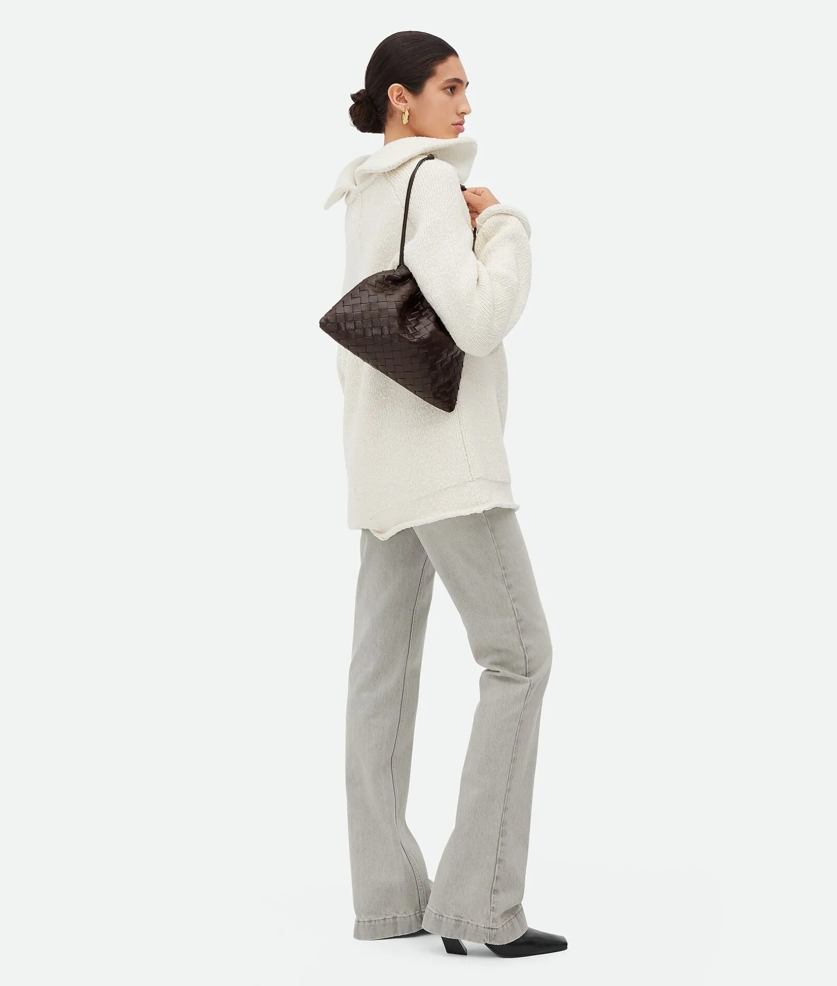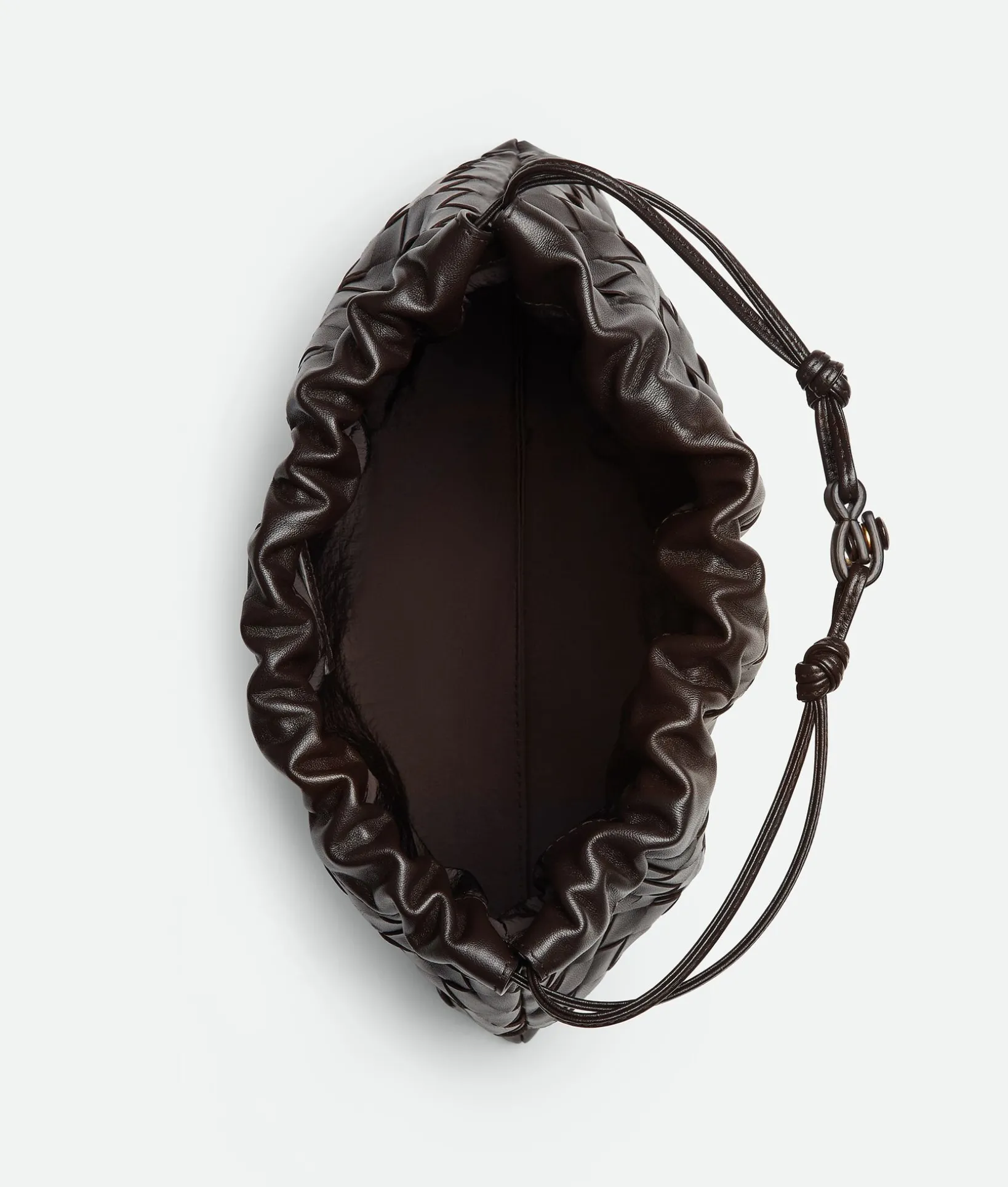 • Drawstring closure with leather loop attachment for shoulder carry
