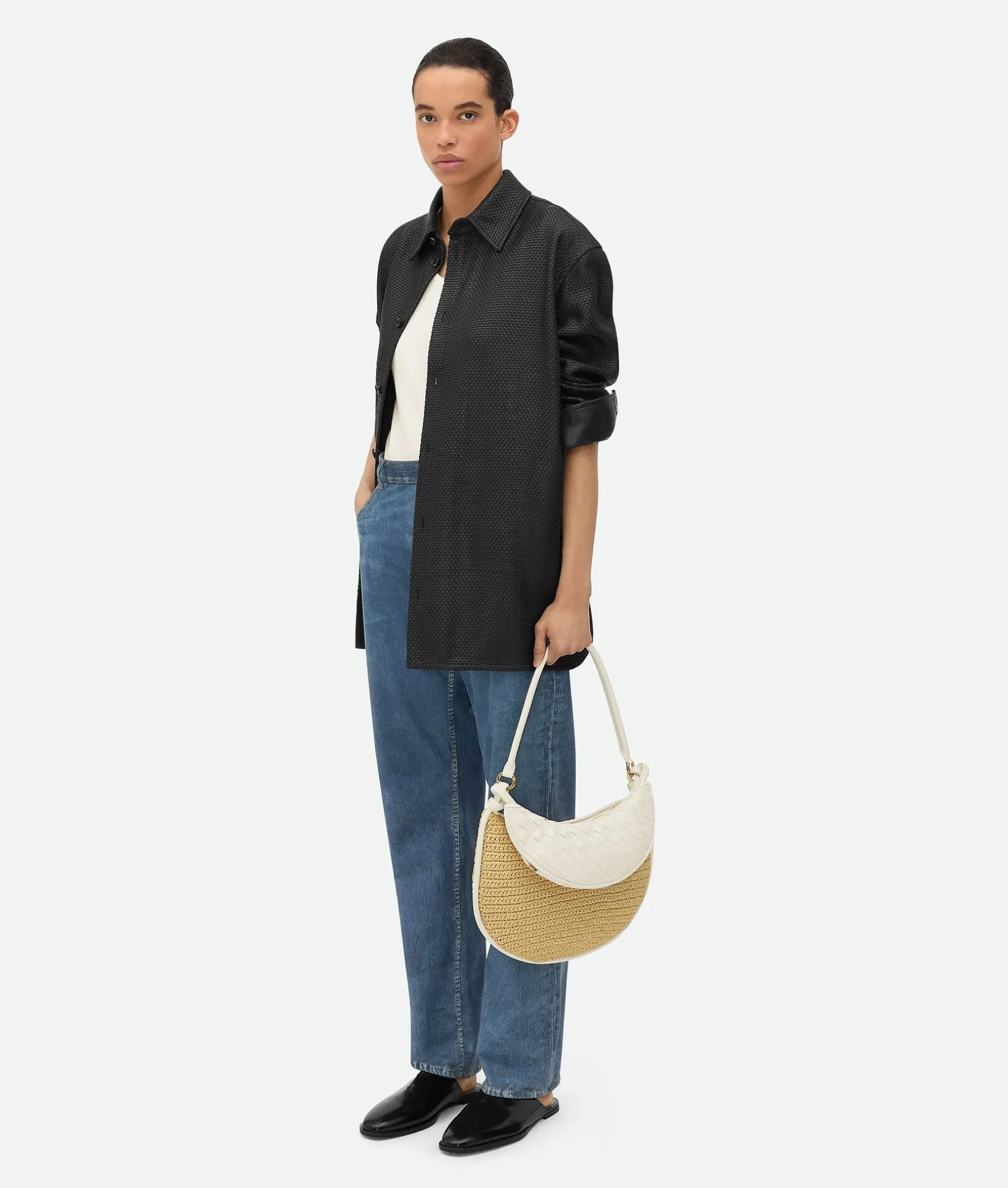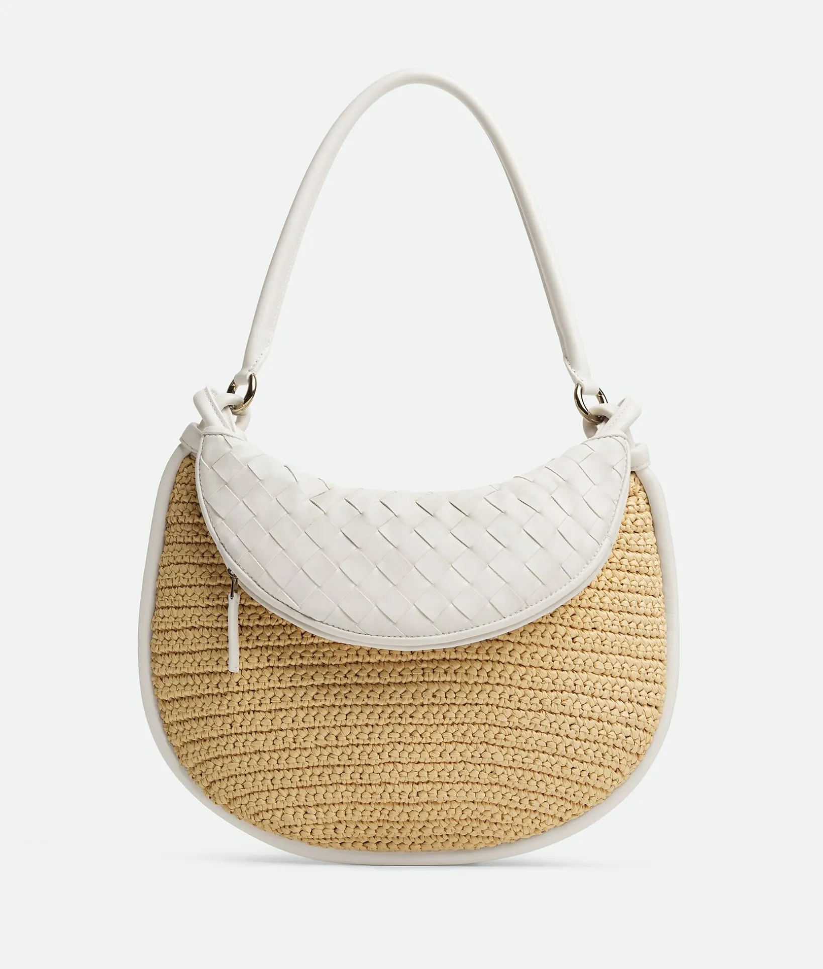 • Medium raffia crochet and Intrecciato leather shoulder bag