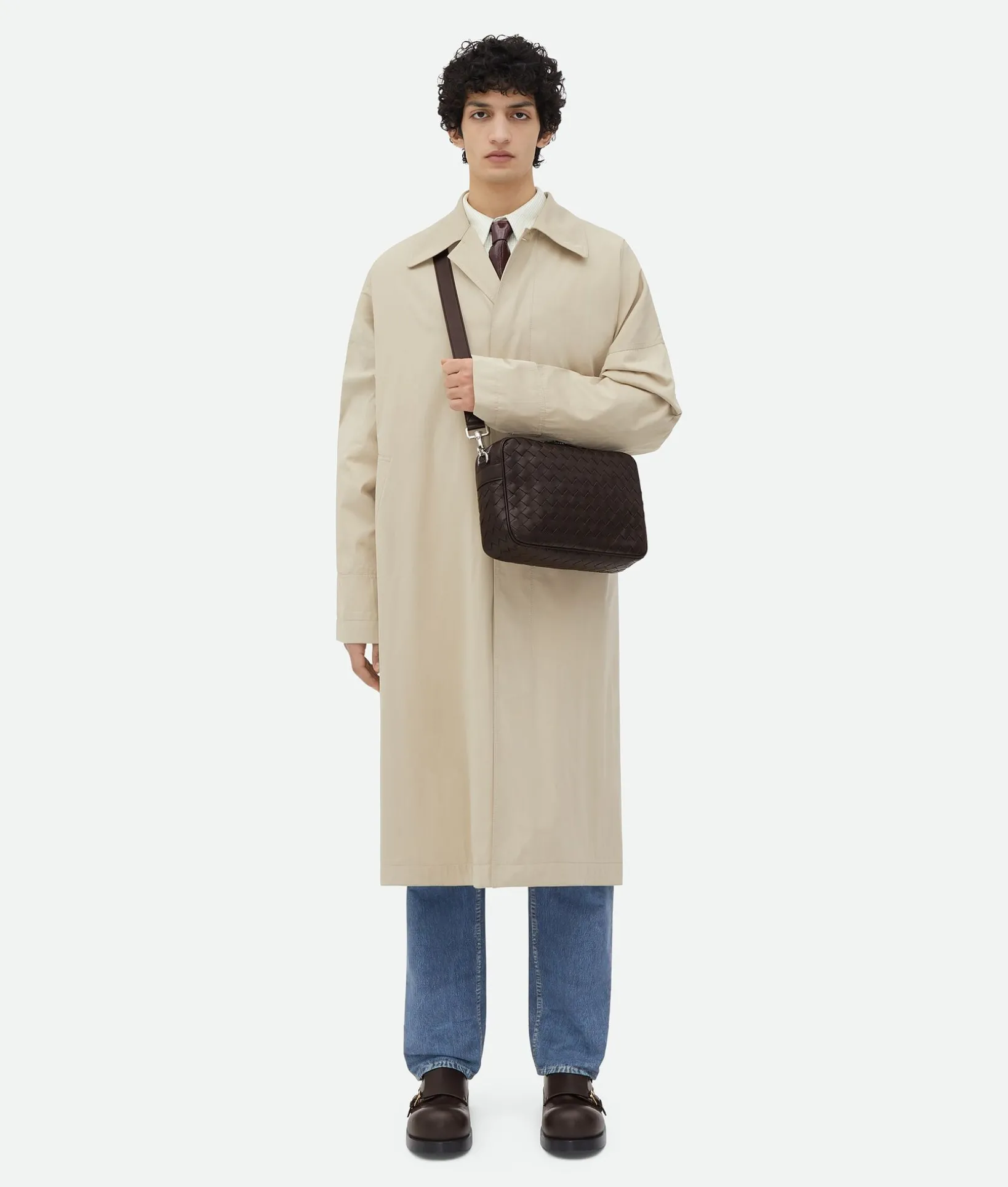 • Medium Intrecciato leather cross-body bag with detachable strap and metal D-ring