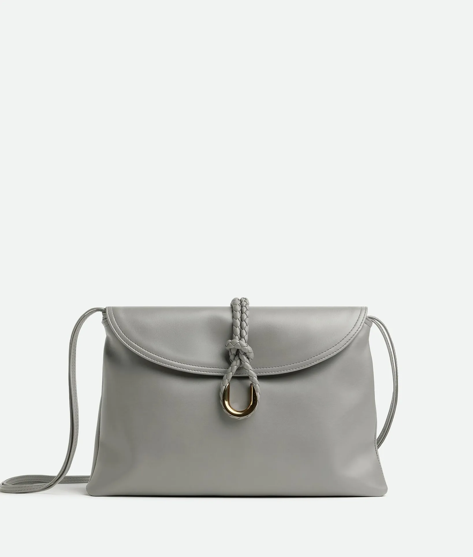 • Medium cross-body bag in smooth calfskin leather with double flap and fastening system consisting of metal elements and coaxial cord