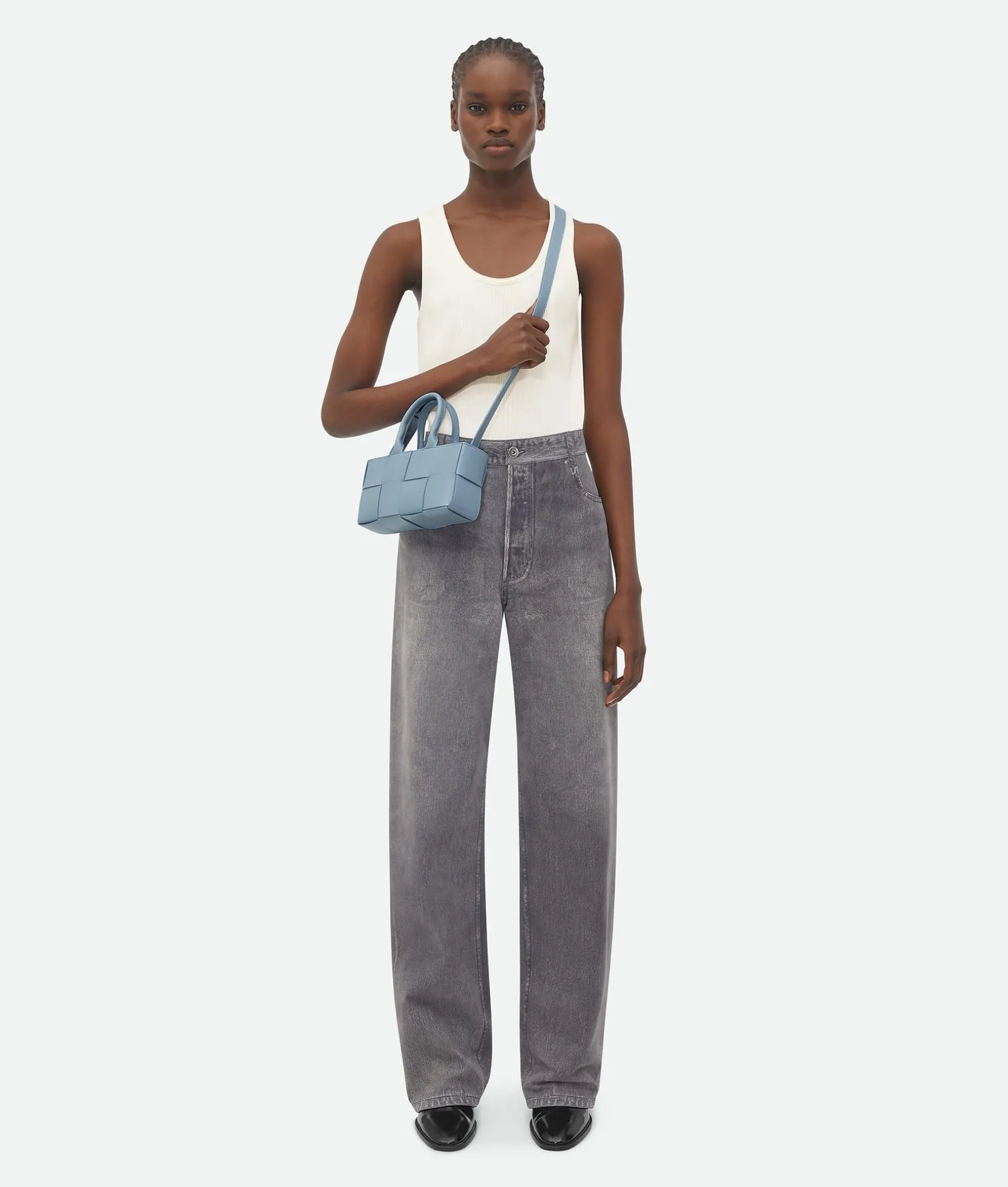 • Mini East-West Intreccio leather tote bag with detachable strap