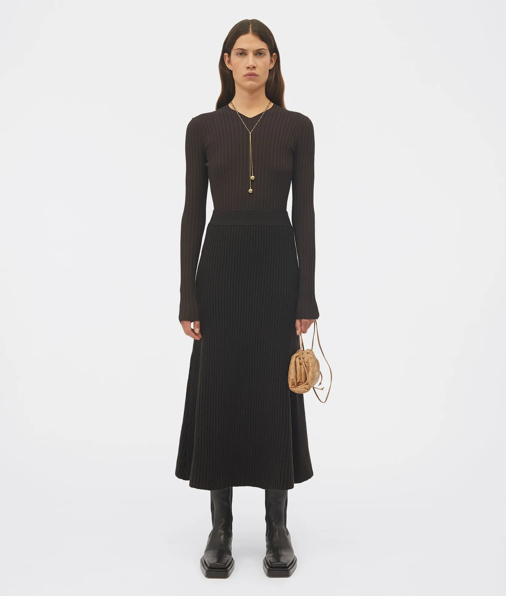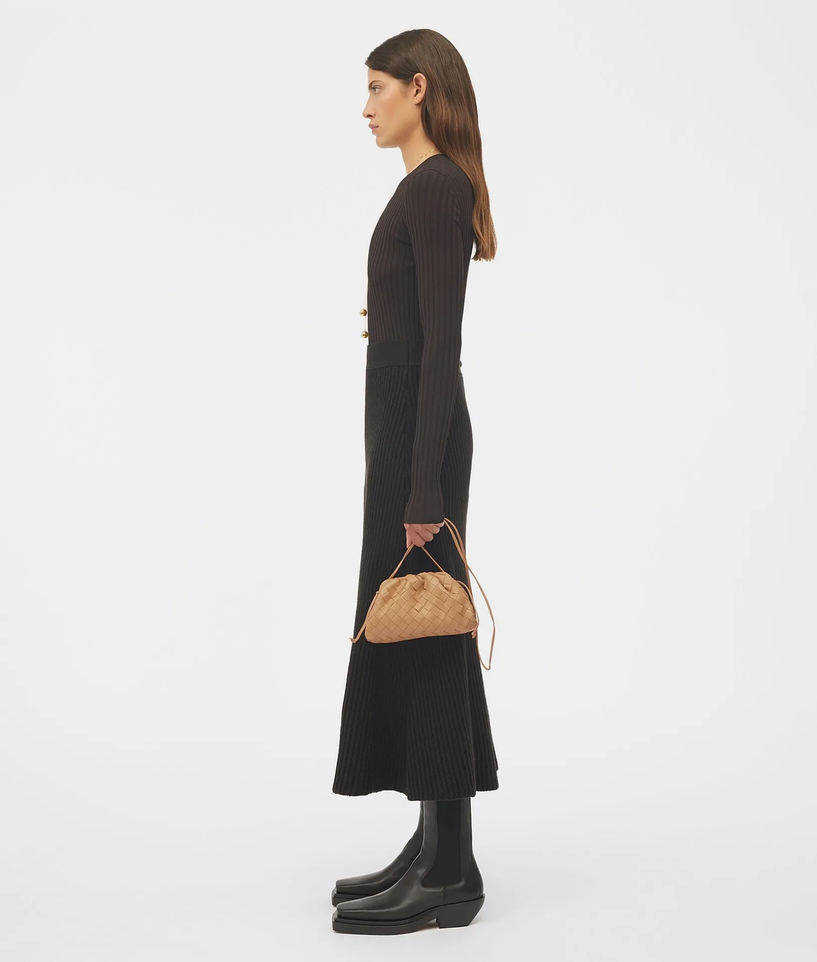 • Mini intrecciato leather clutch with strap
