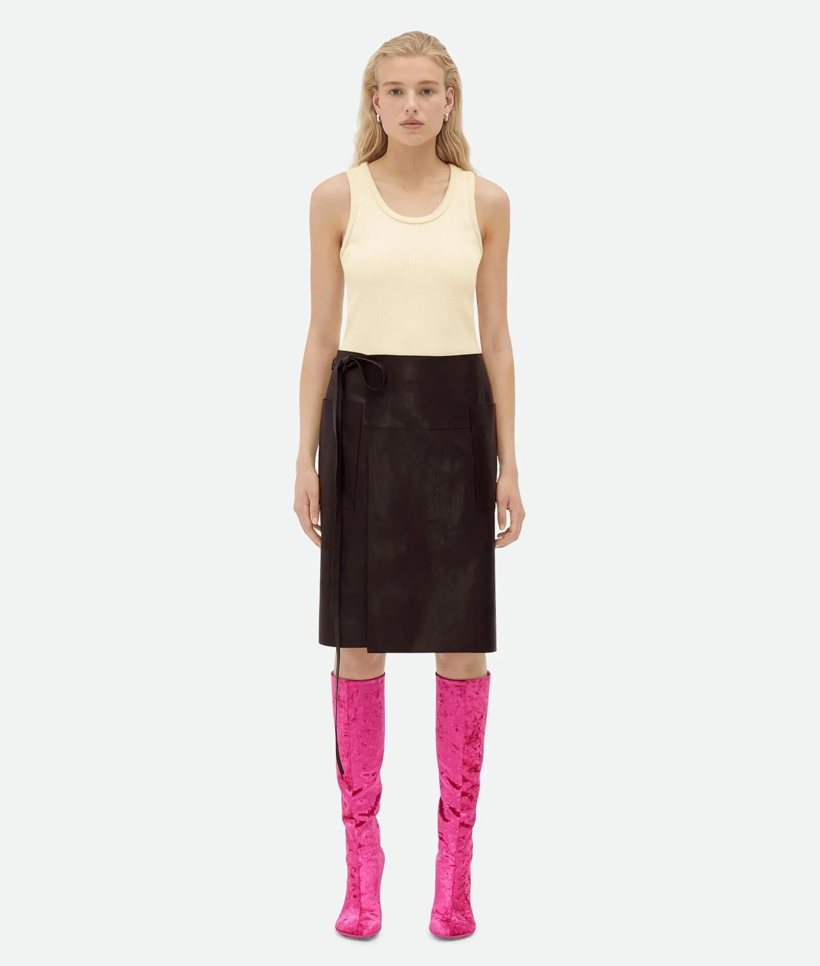 • Nappa leather wrapped midi skirt
