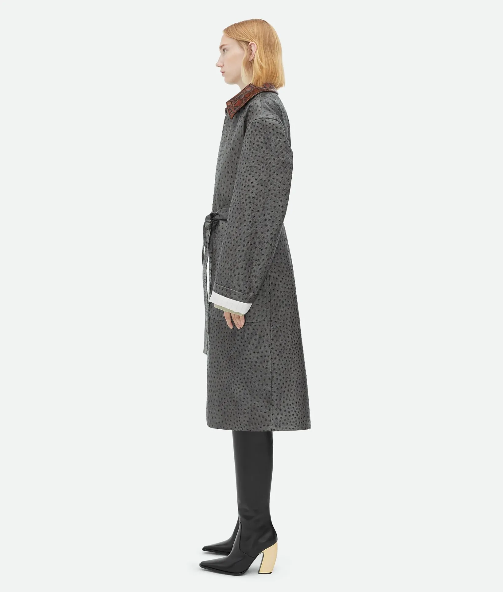 • Embossed leather belted coat