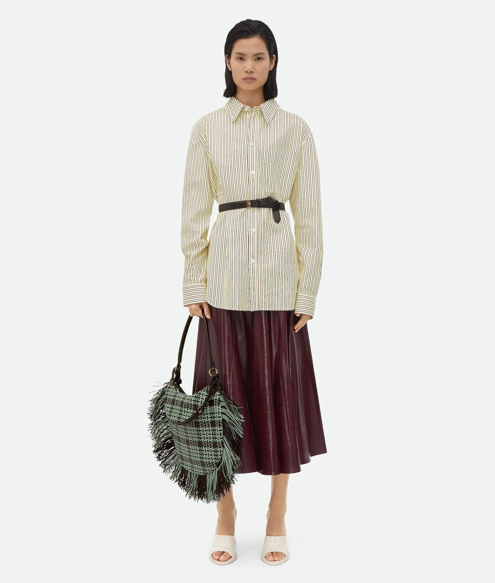 • Printed leather striped shirt