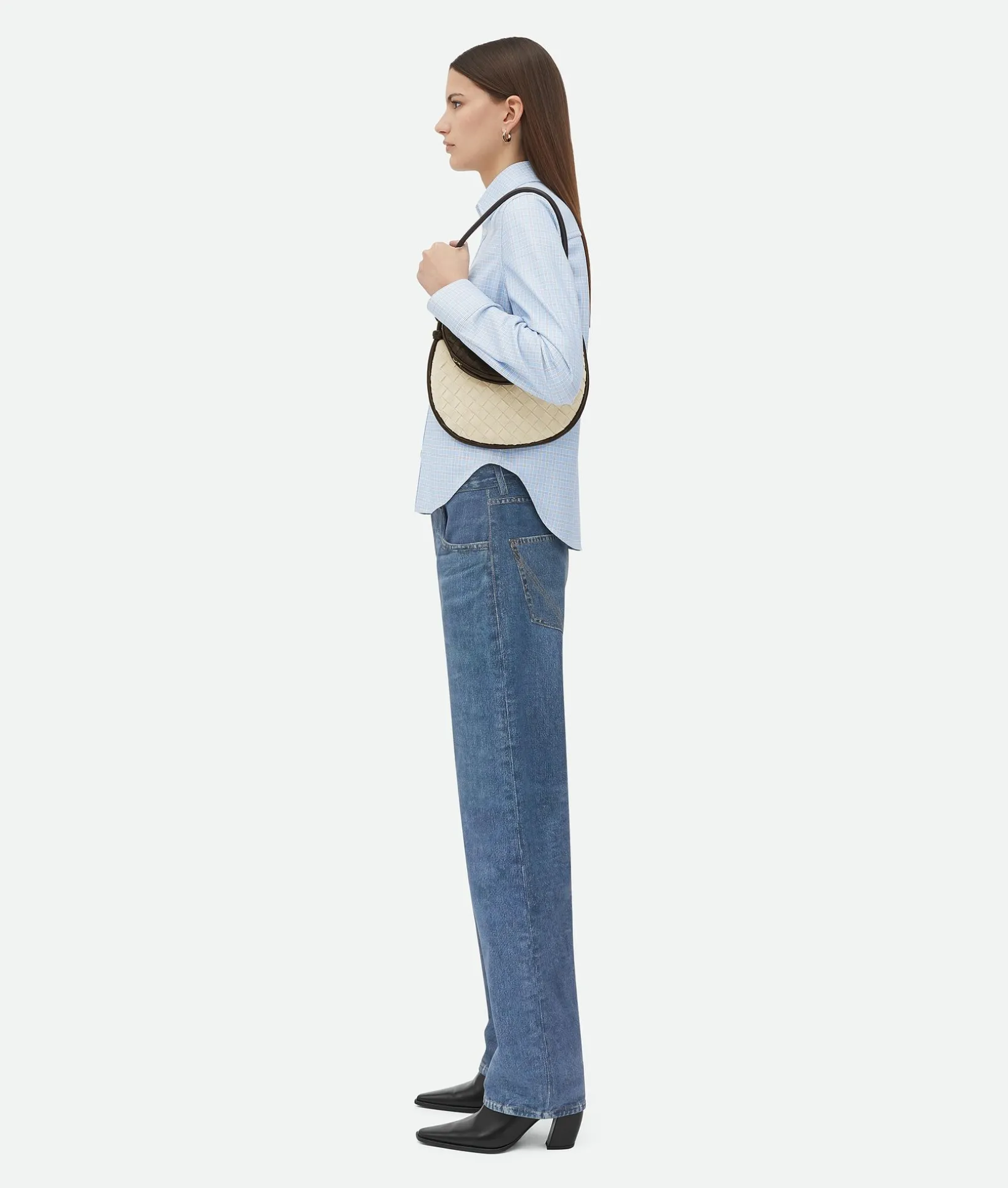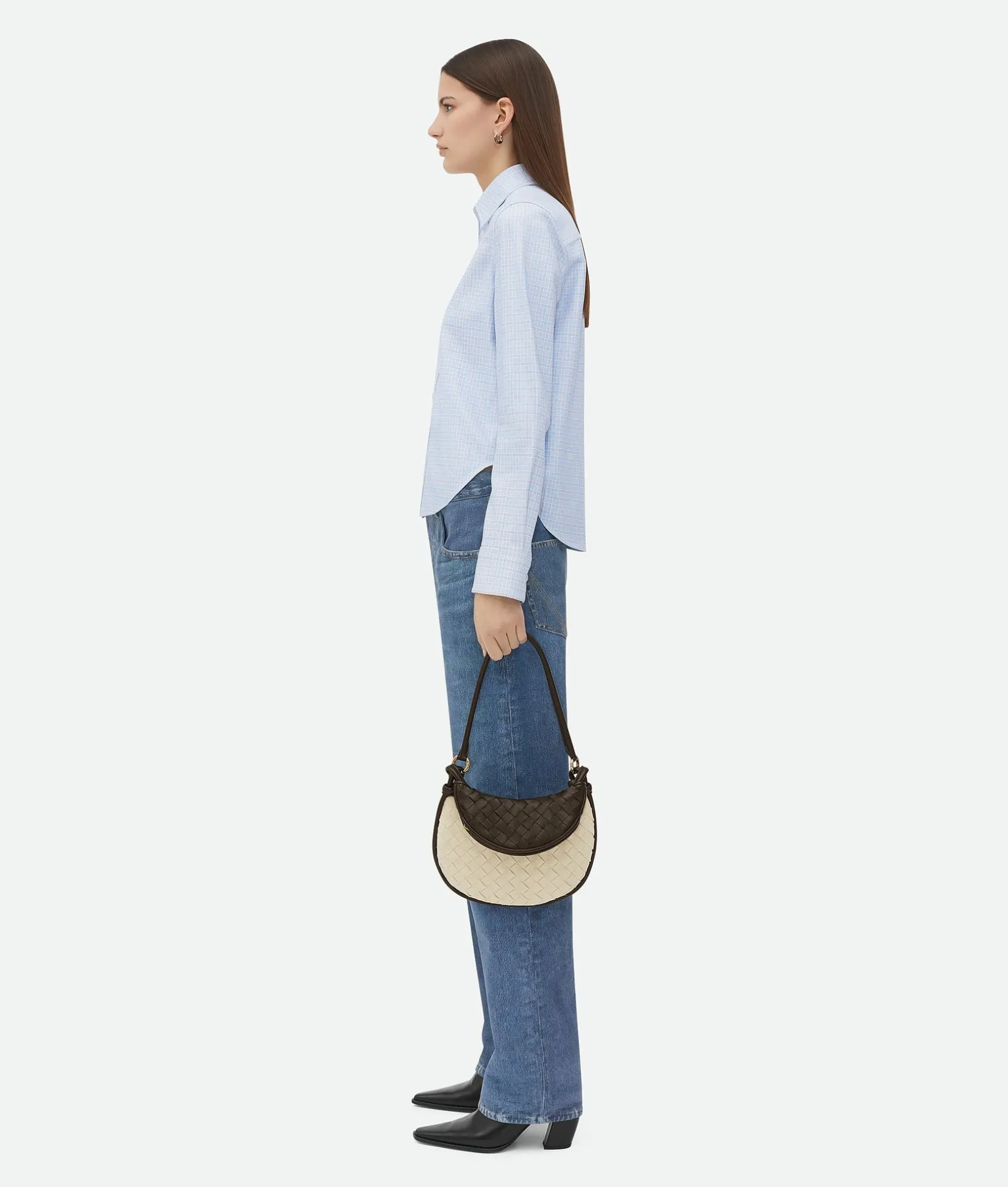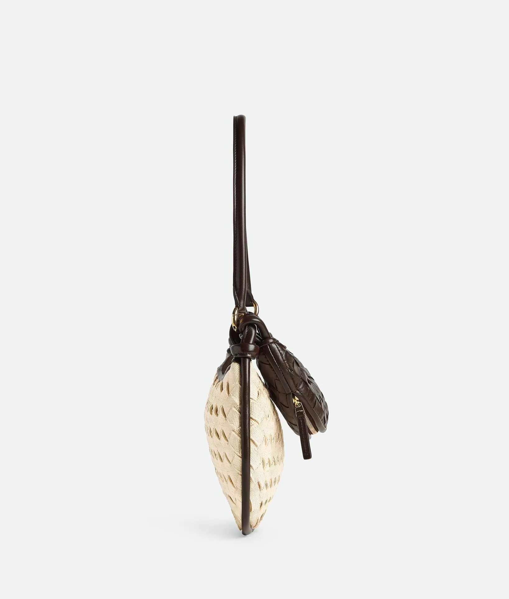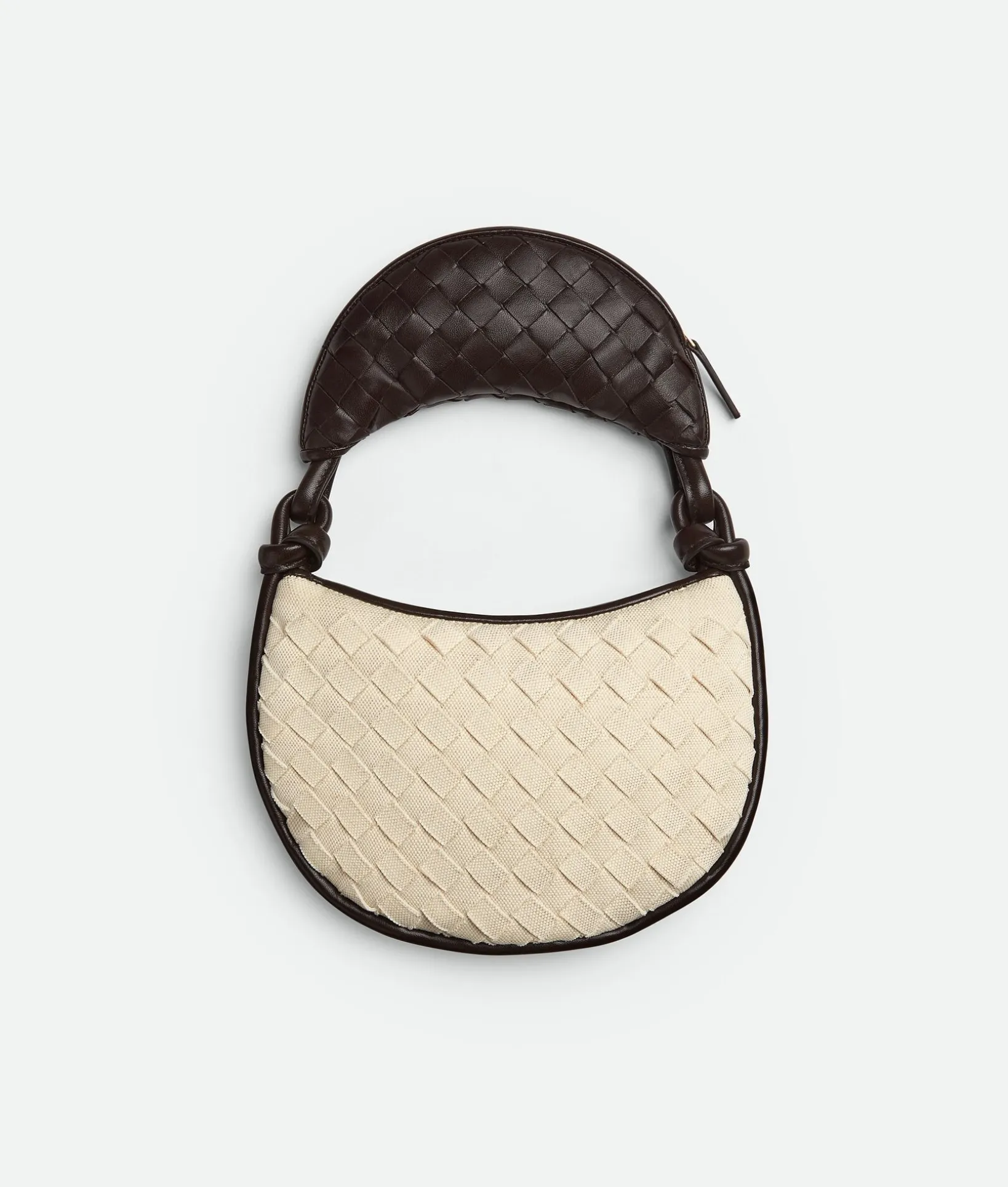• Additional half-moon zipped handle in Intrecciato leather