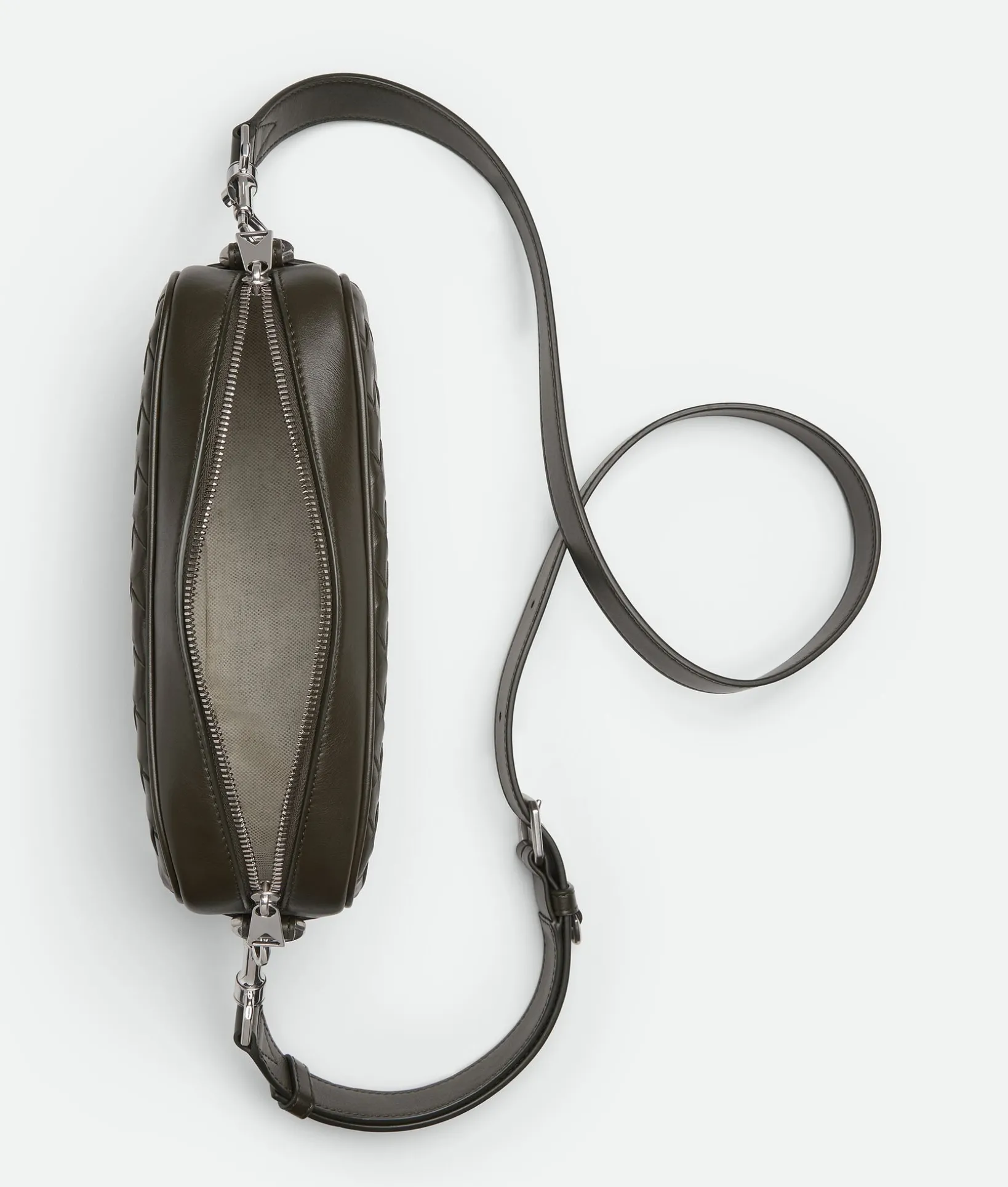 • Small Intrecciato leather cross-body bag with detachable strap and metal D-ring