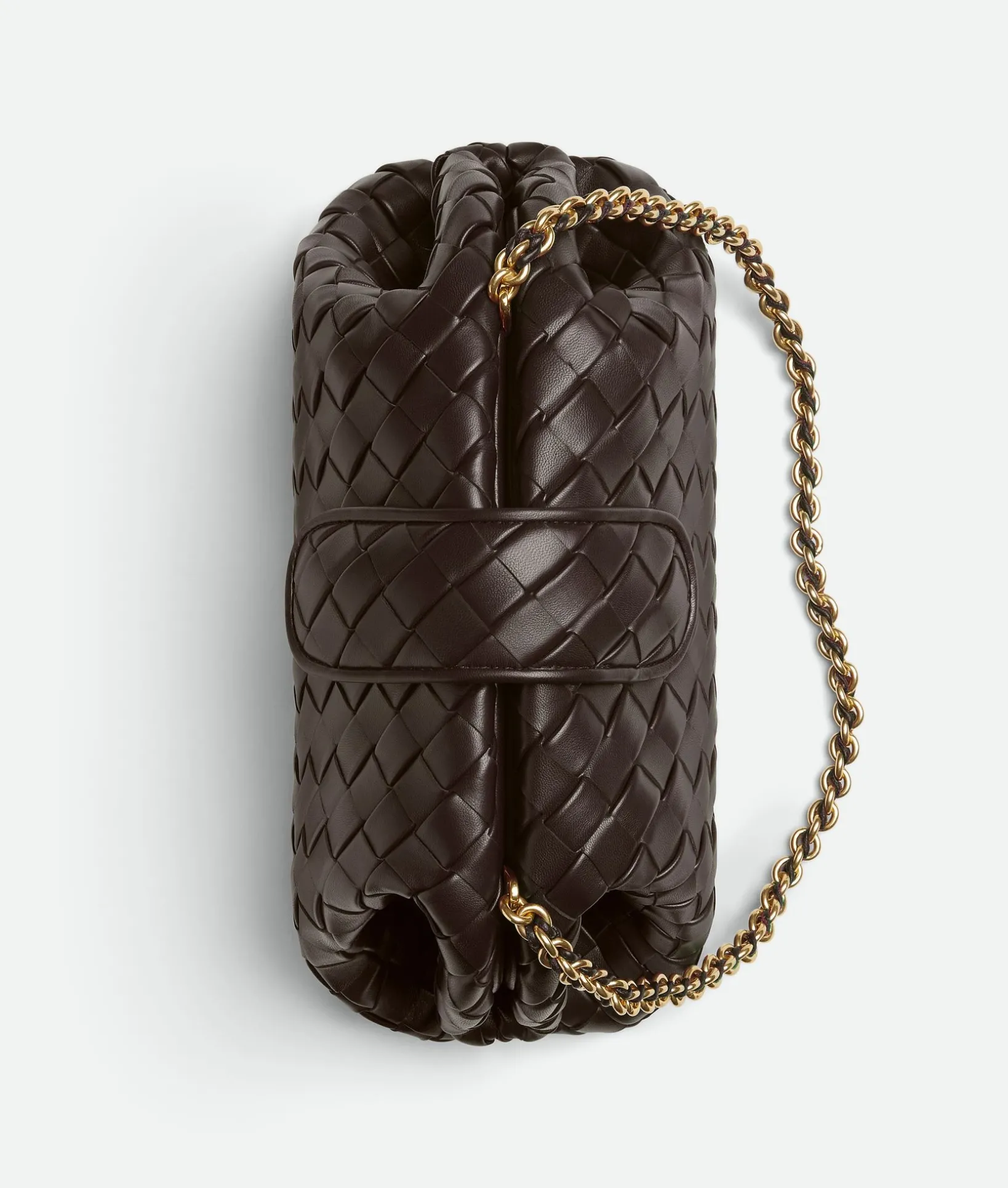 • Padded Intrecciato leather teen clutch with leather braided metal chain