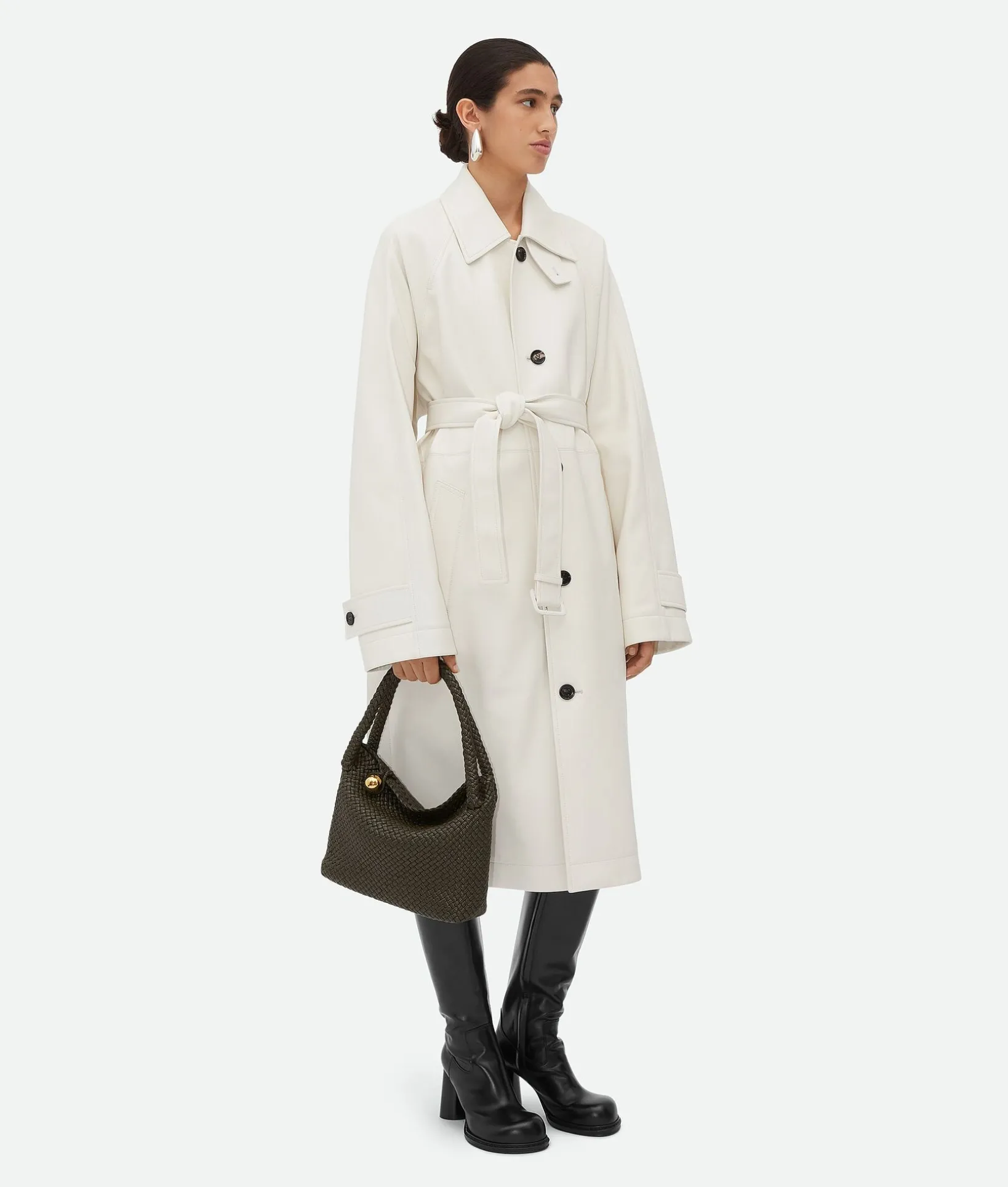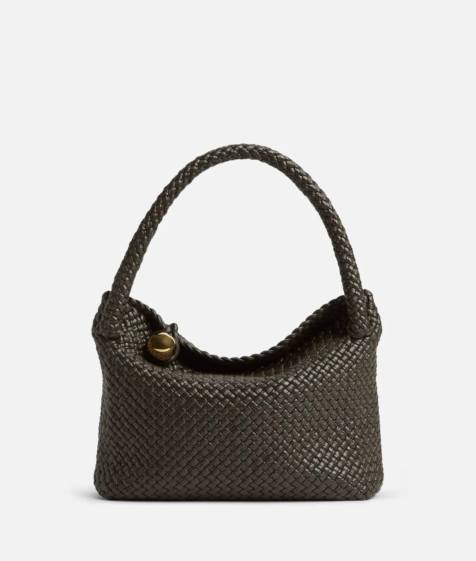 • Flap closure with muse brass sphere embellishment