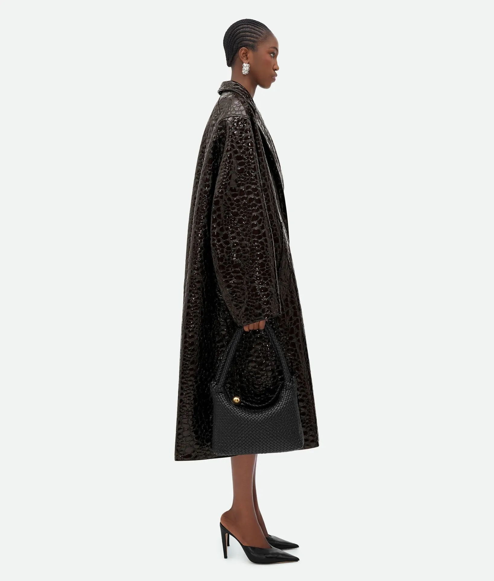 • Flap closure with metallic sphere embellishment