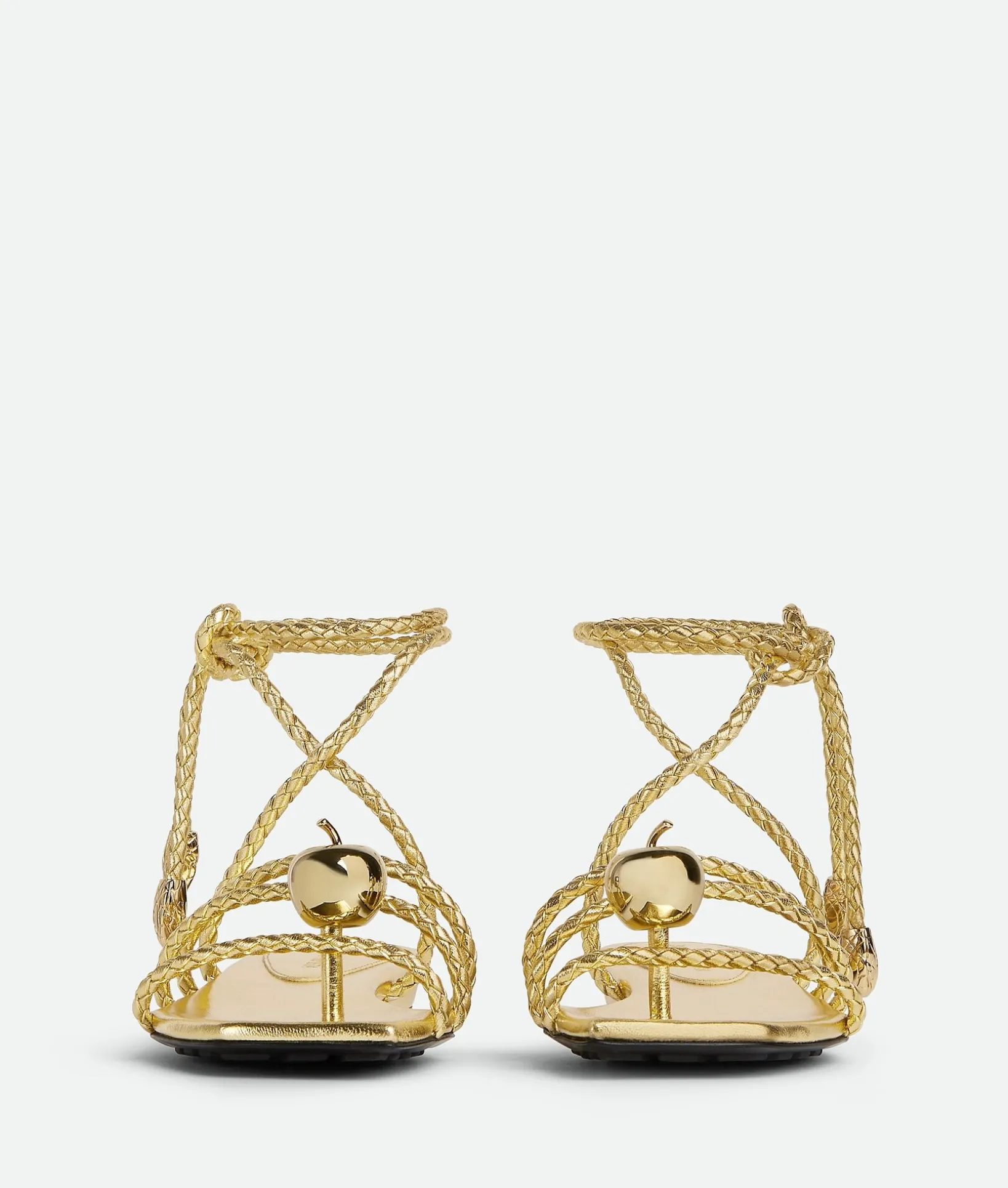 • Laminated leather lace-up flat sandal with coaxial laces and galvanized embellishments
