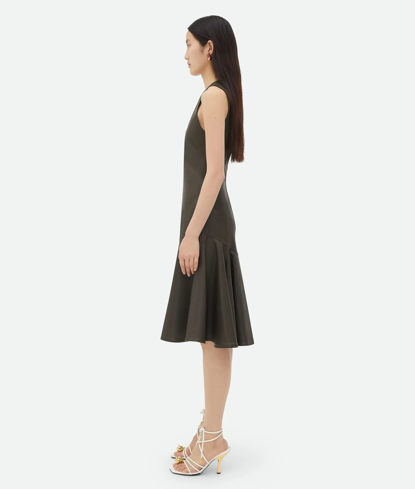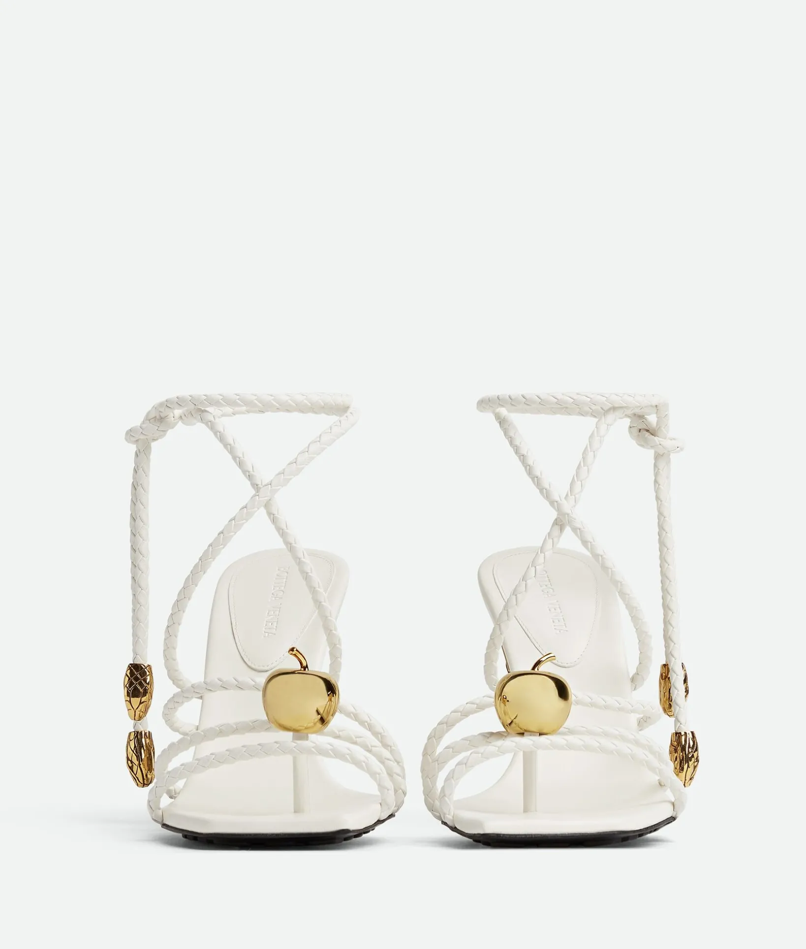 • Leather lace-up sandal with coaxial laces and galvanized embellishments