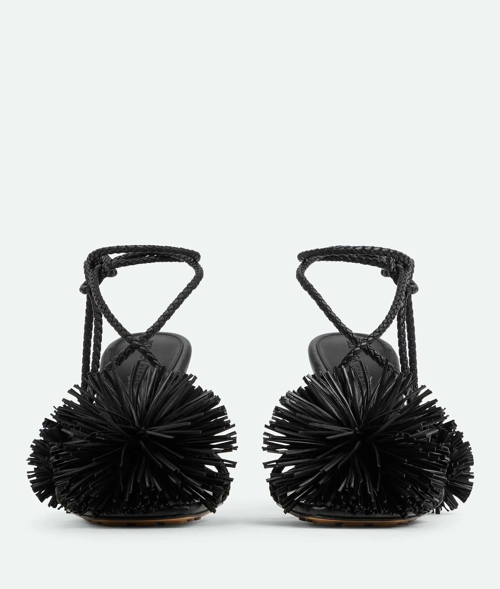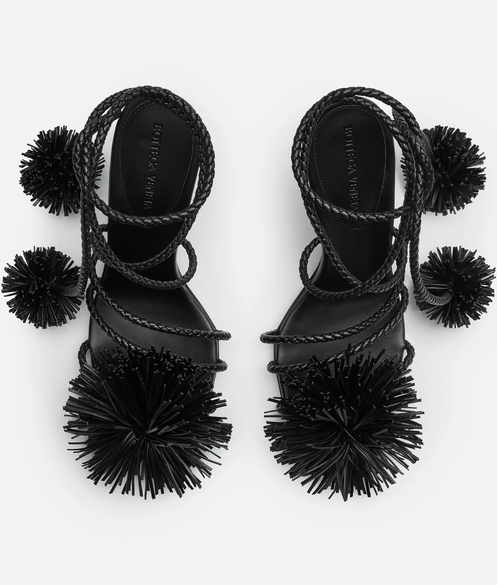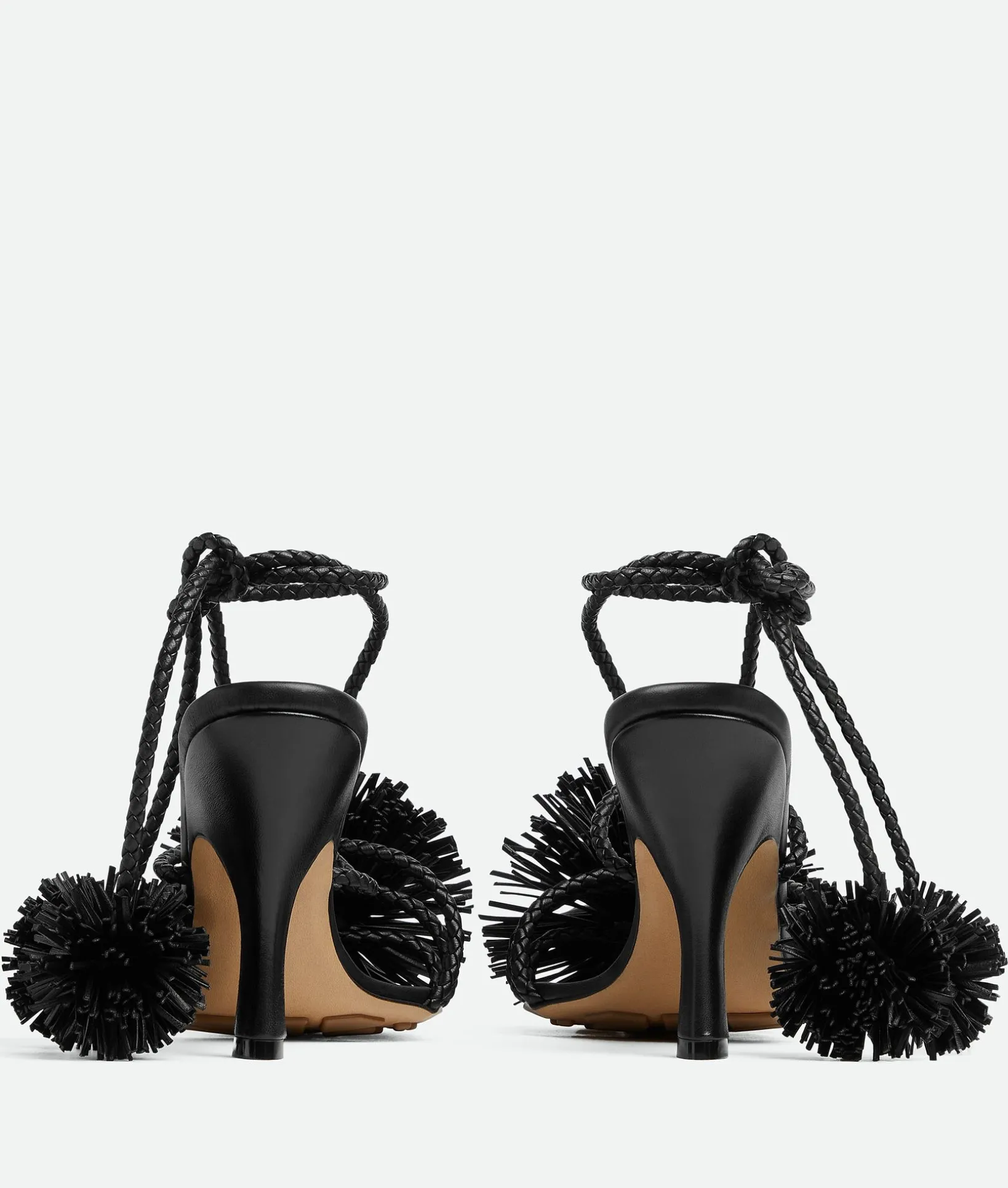 • Leather lace-up sandal with coaxial laces and pompom embellishments