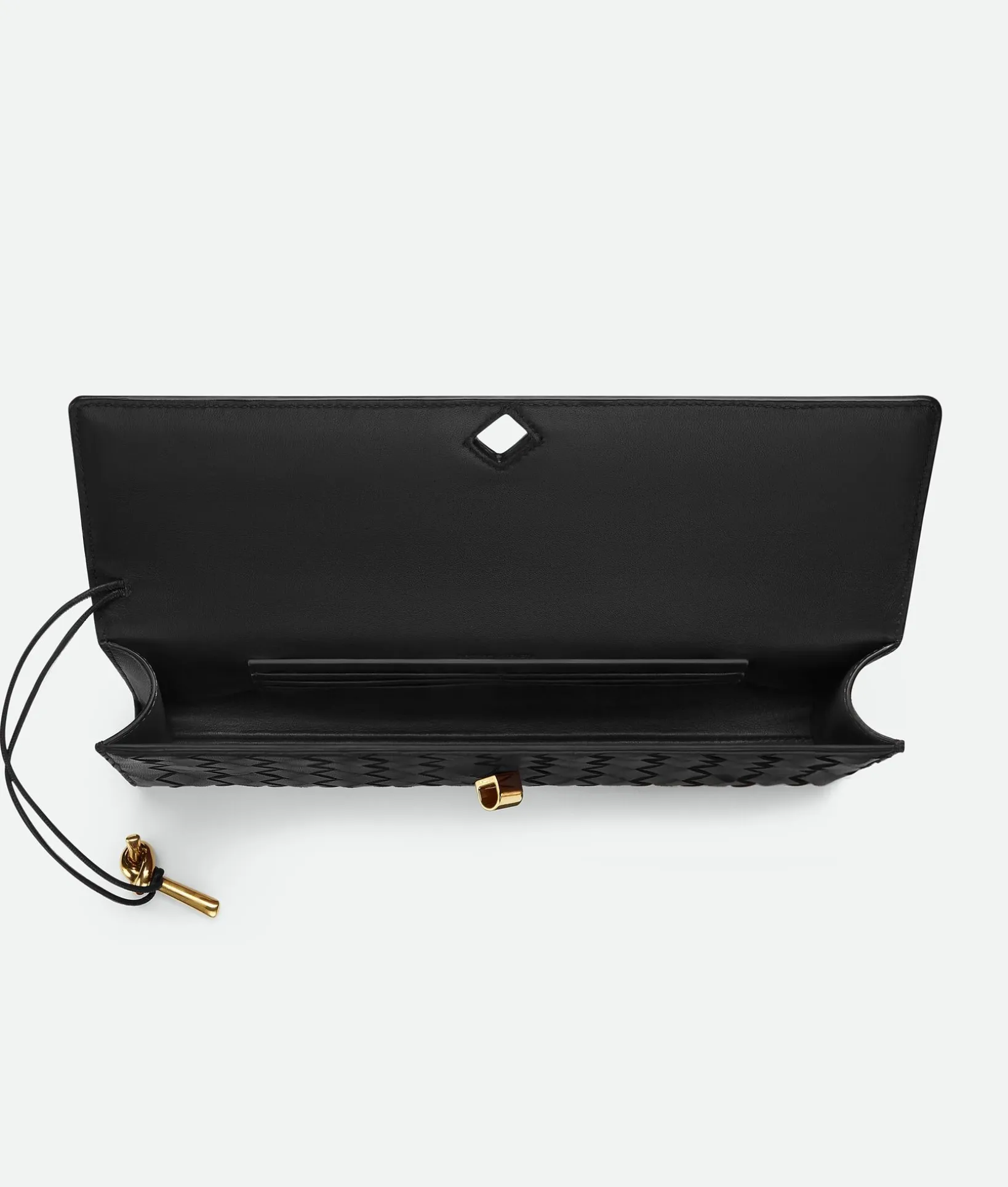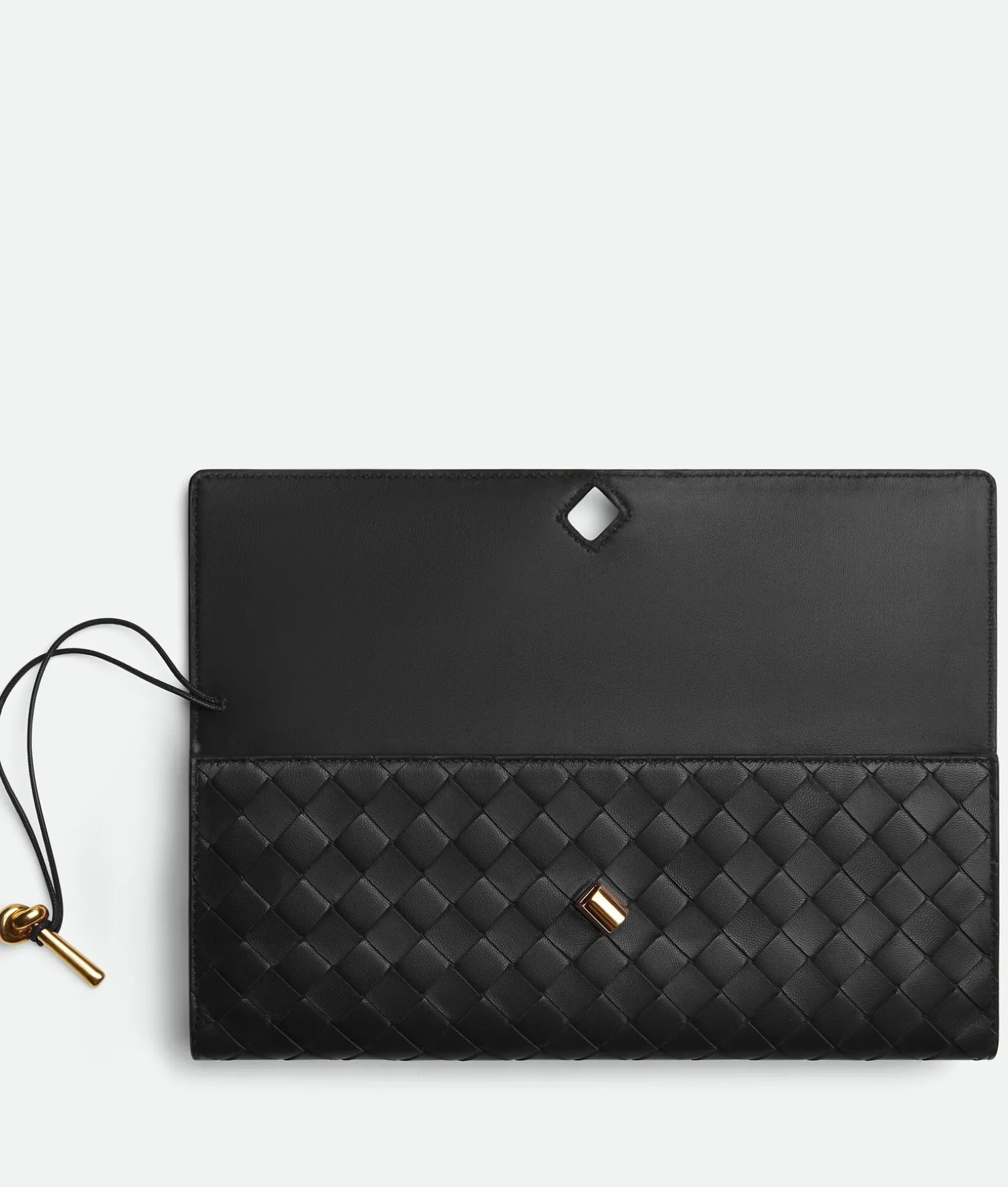 • Intrecciato leather top handle clutch with metallic knot closure