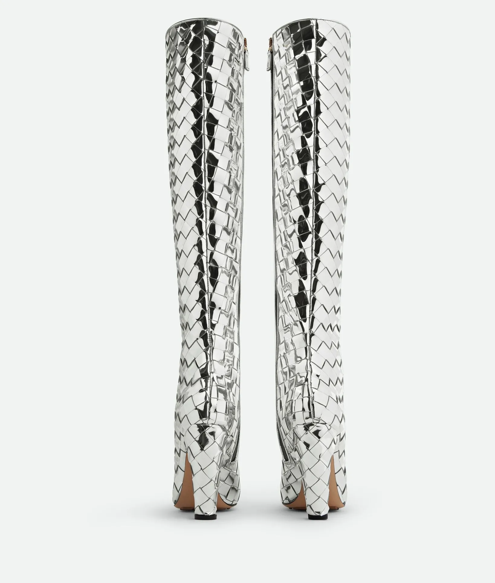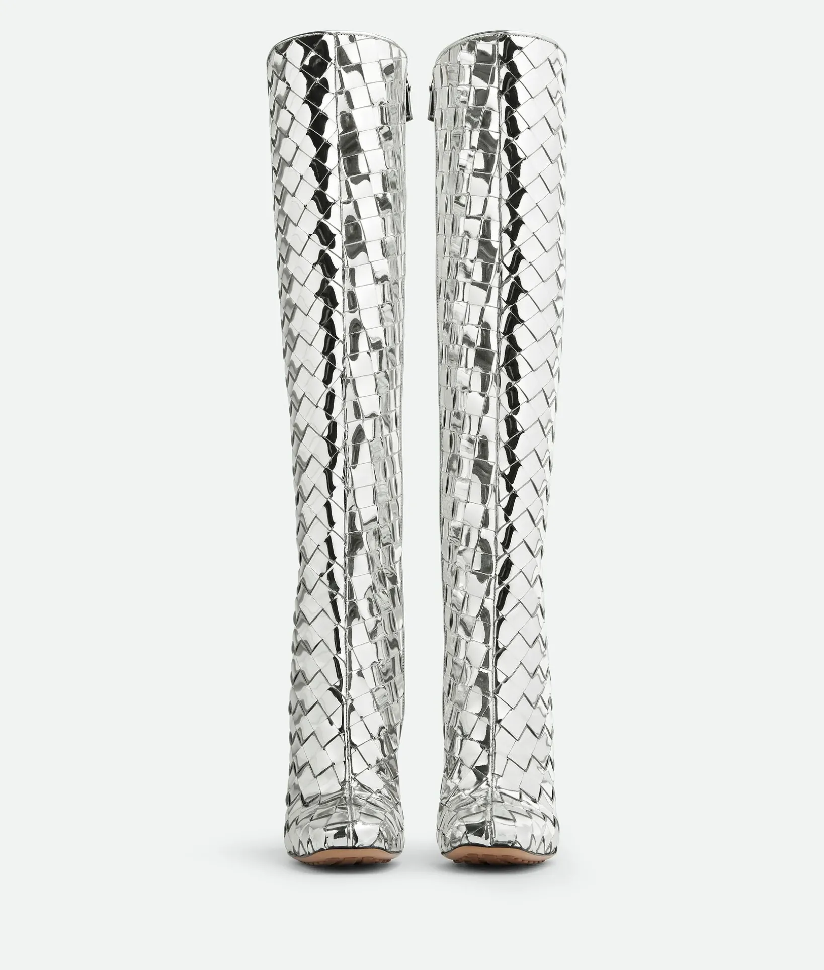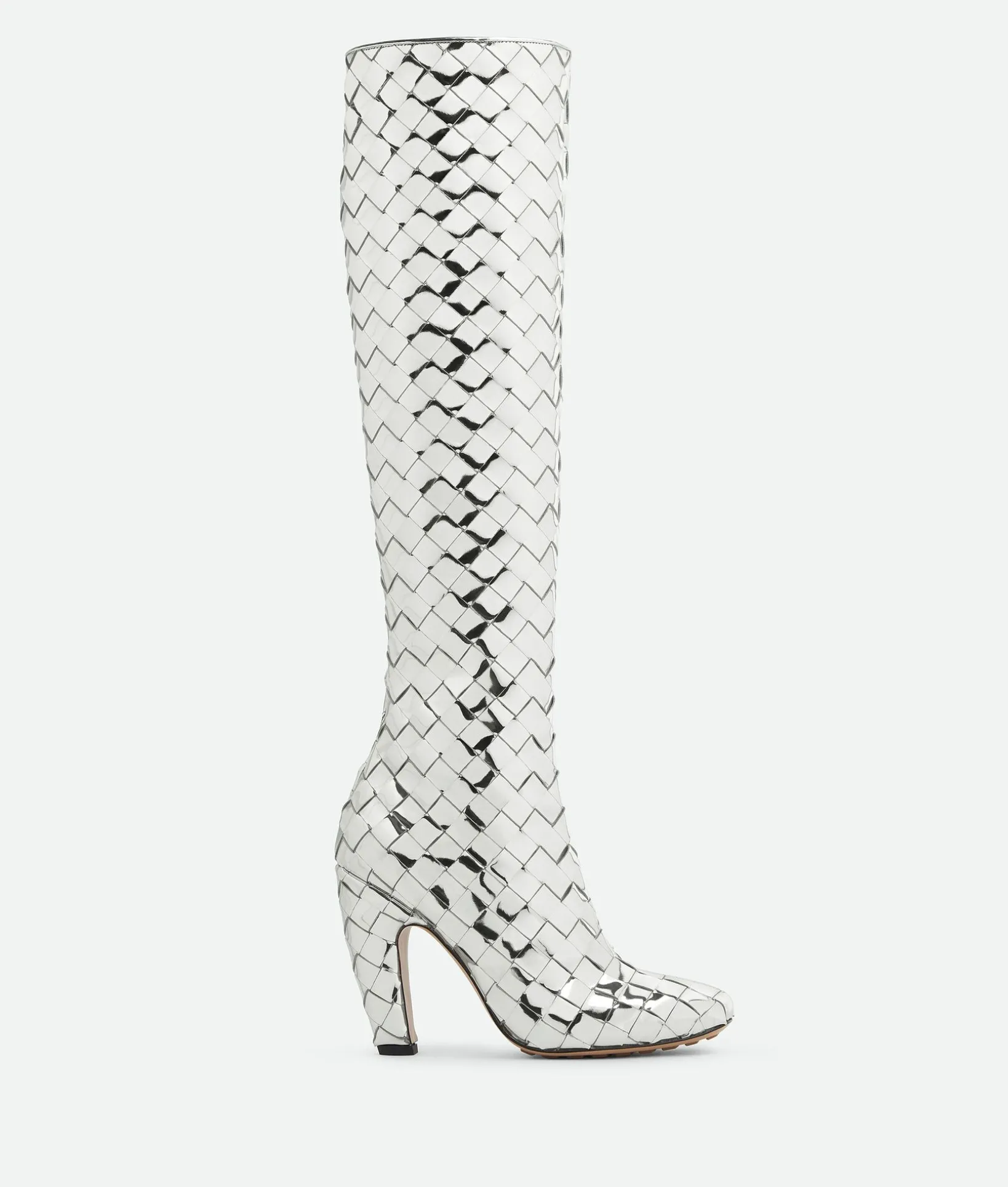 • Reflective Intrecciato leather knee-high boot