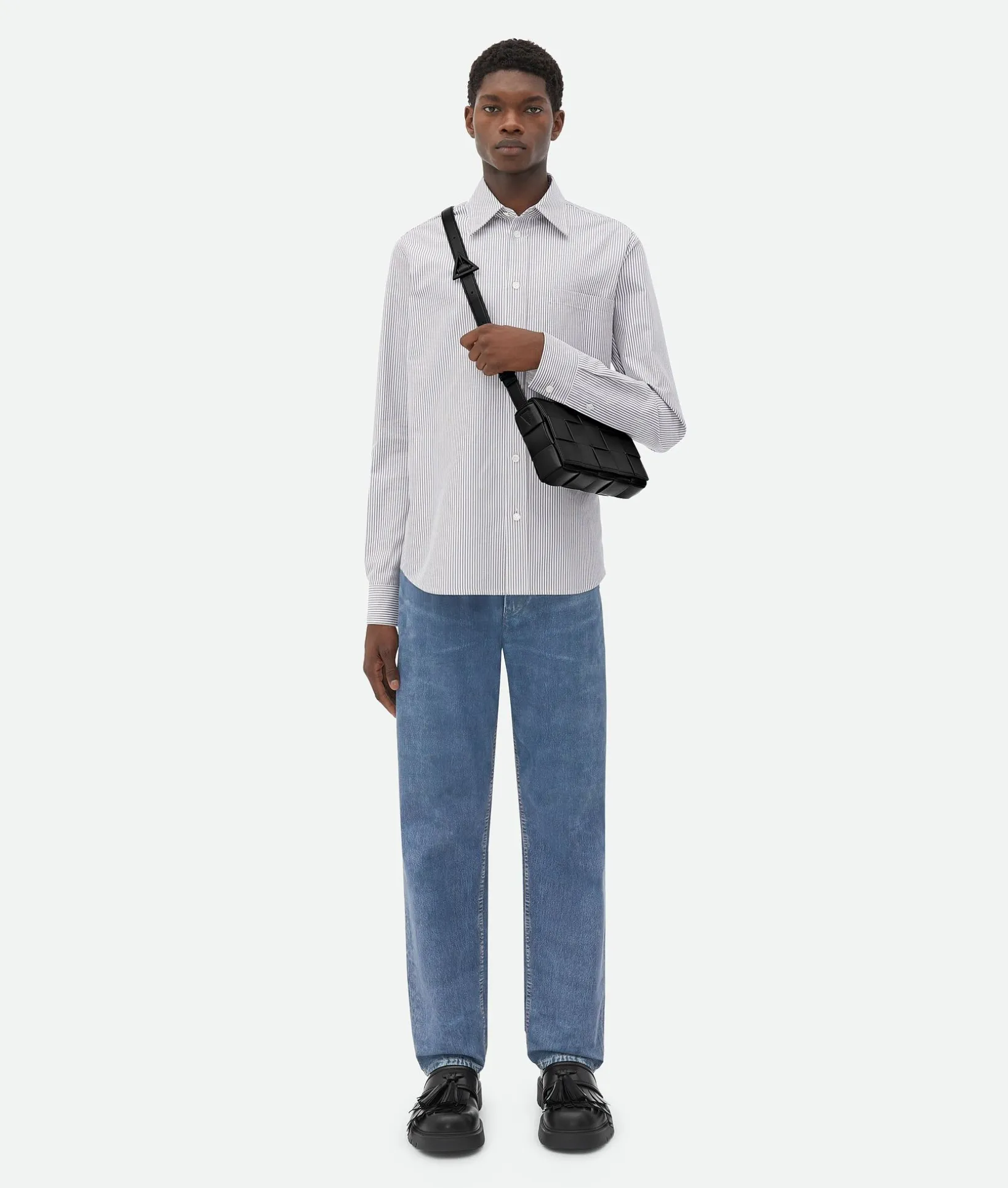 • Medium Intreccio leather cross-body bag with mat black metallic buckle