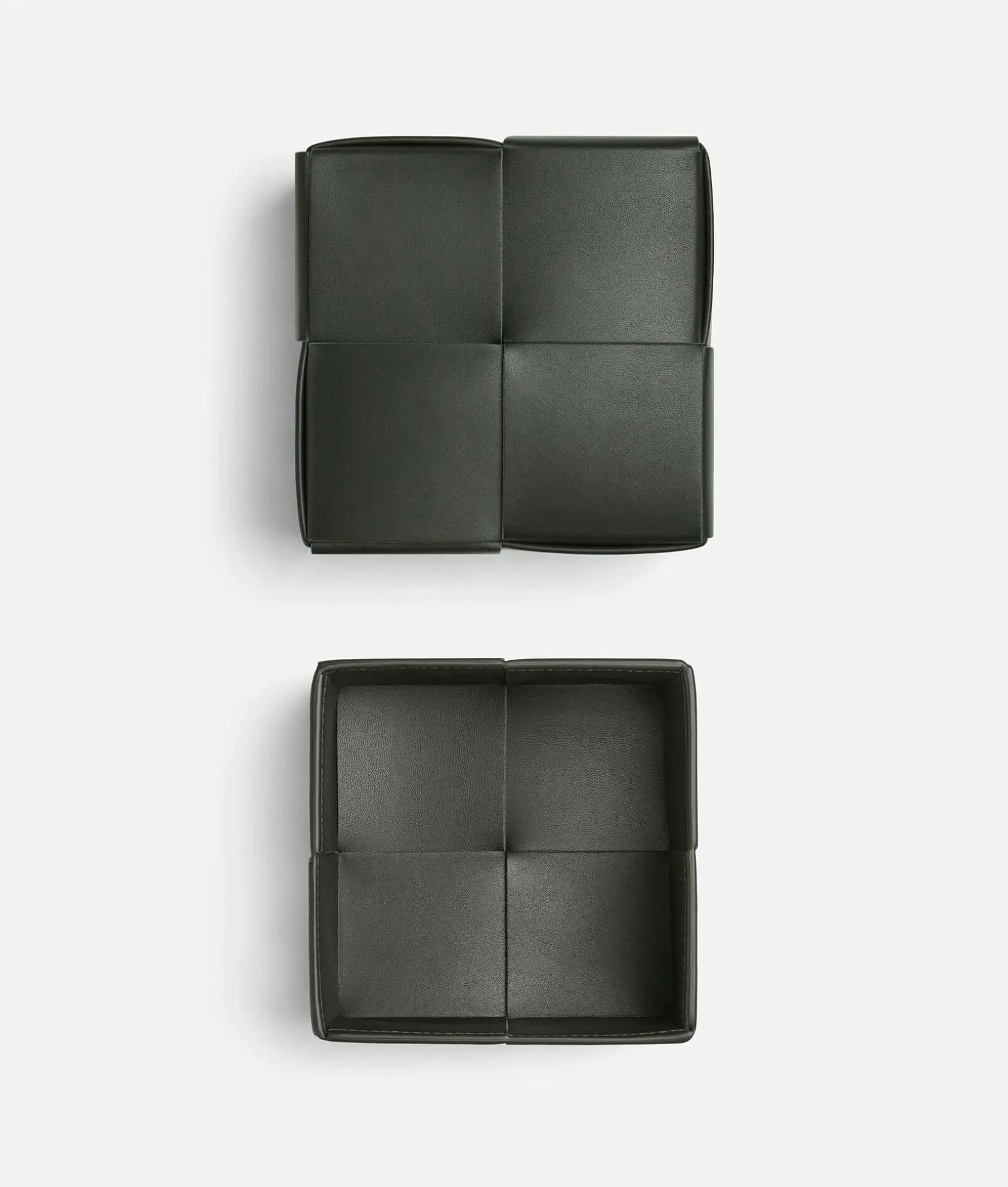 • Multifunctional square box in Intrecciato leather
