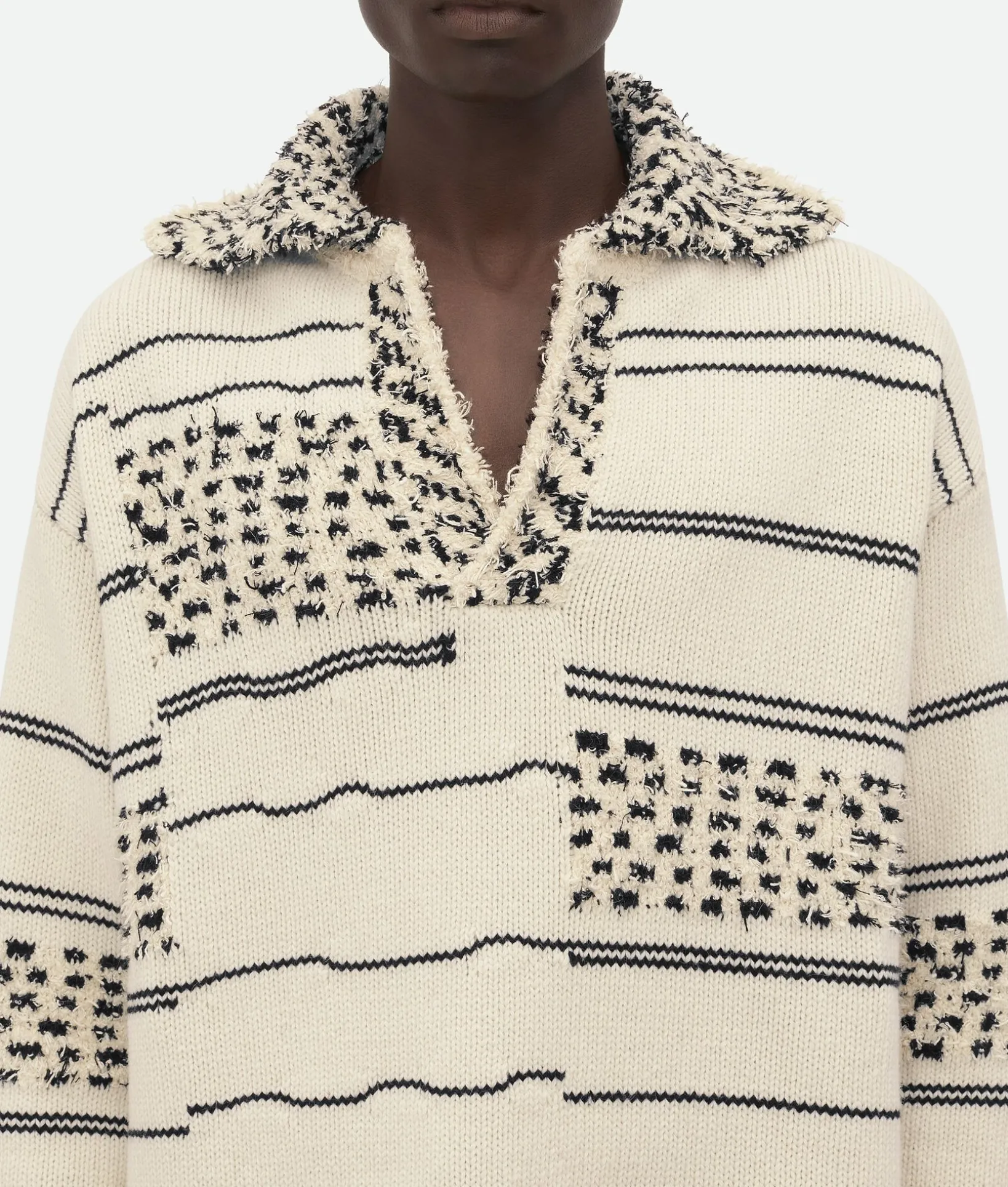 • Cotton and wool textured striped polo jumper