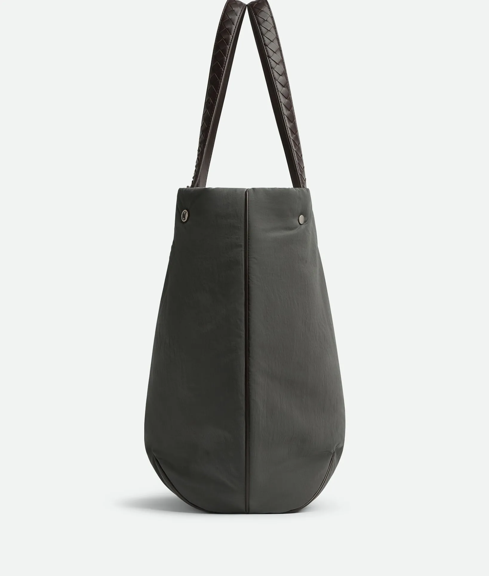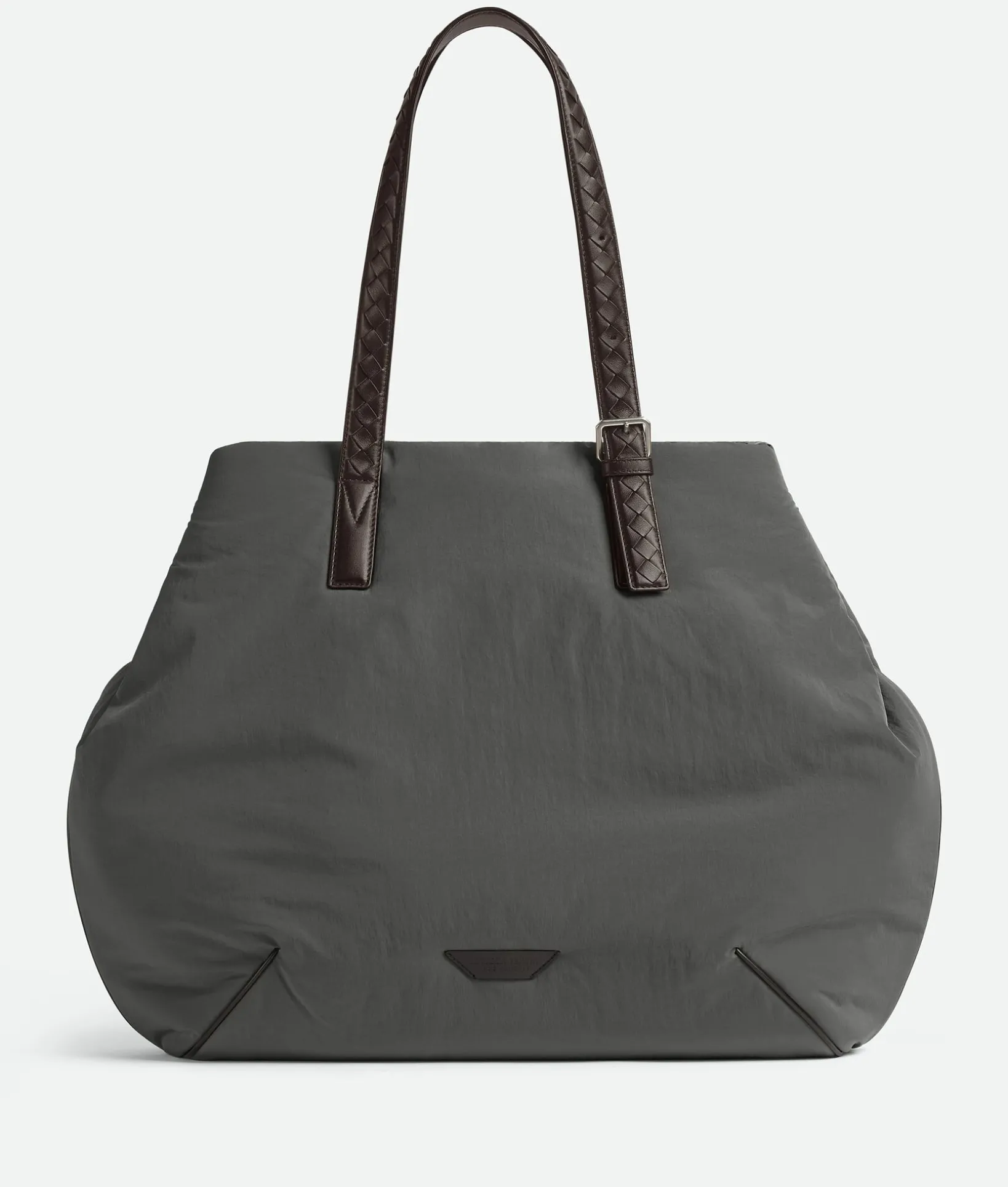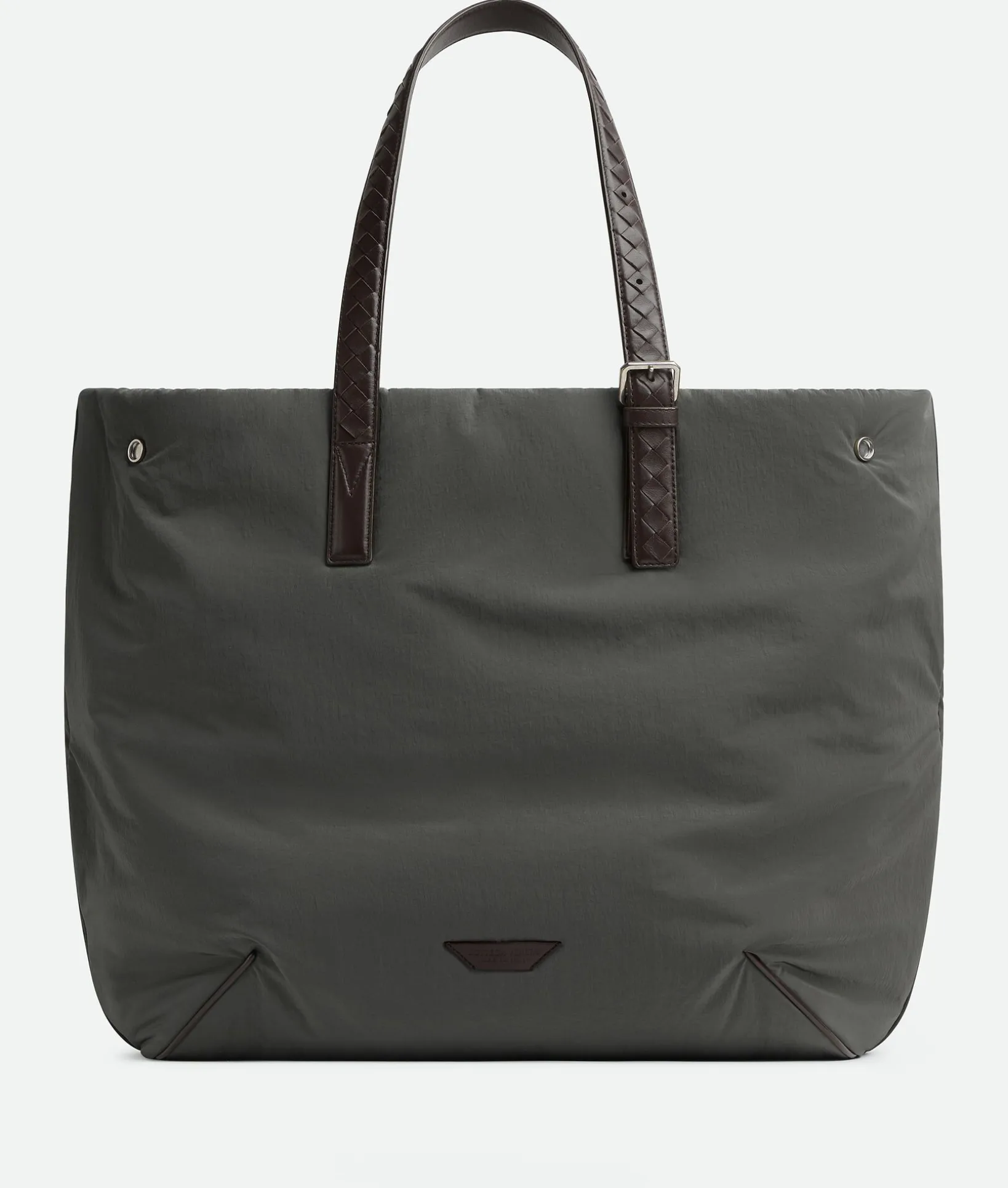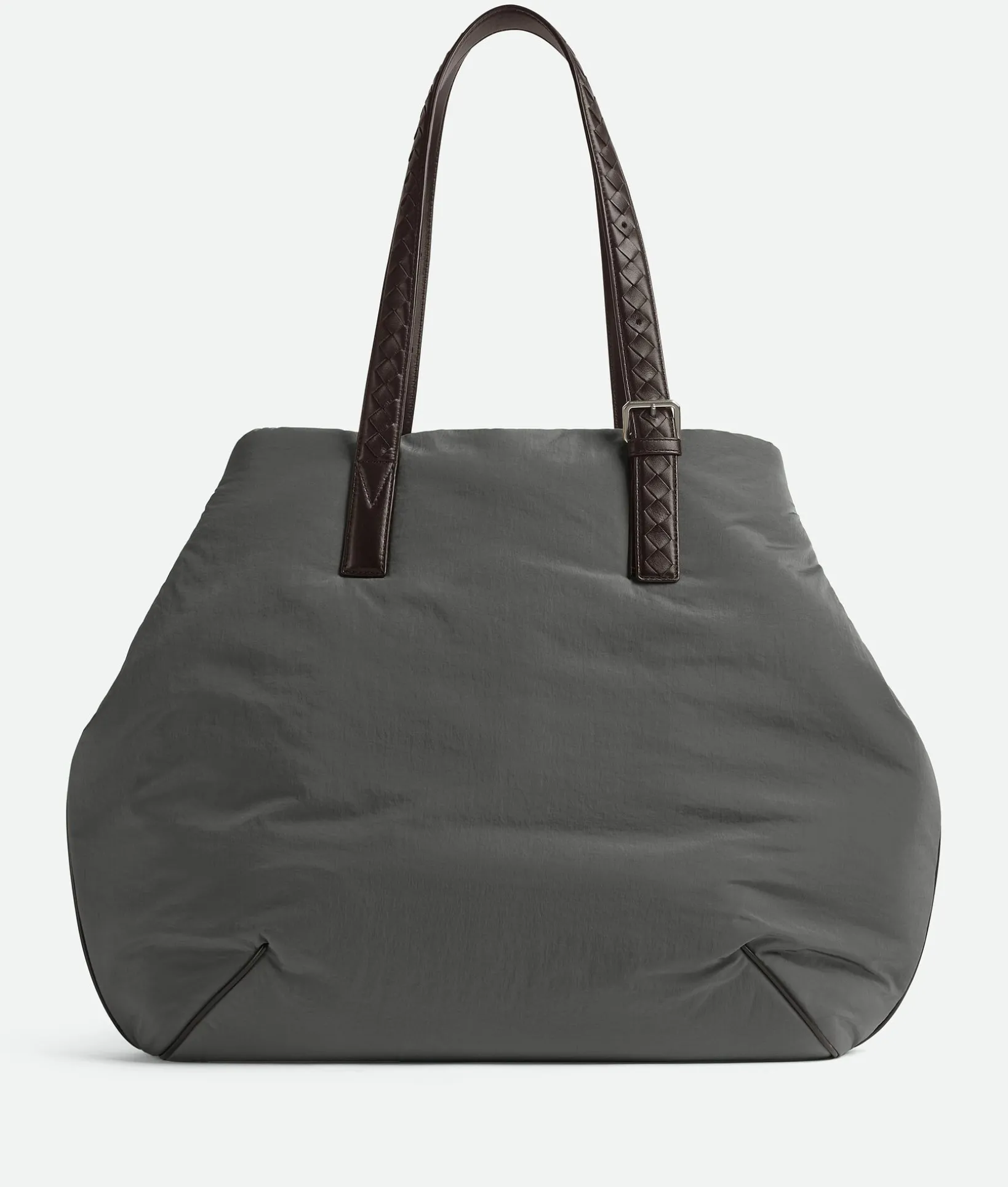 • Lightweight padded nylon tote bag with adjustable shoulder handles in Intrecciato leather