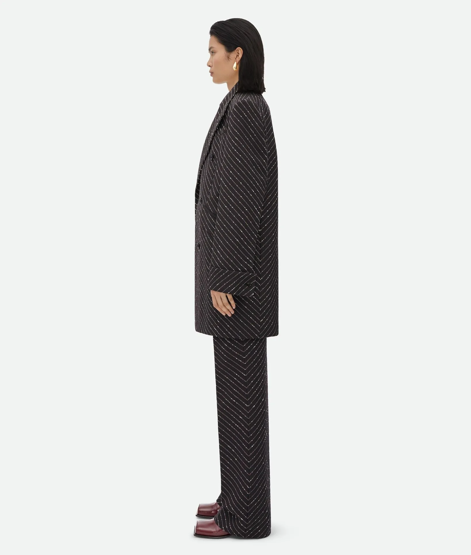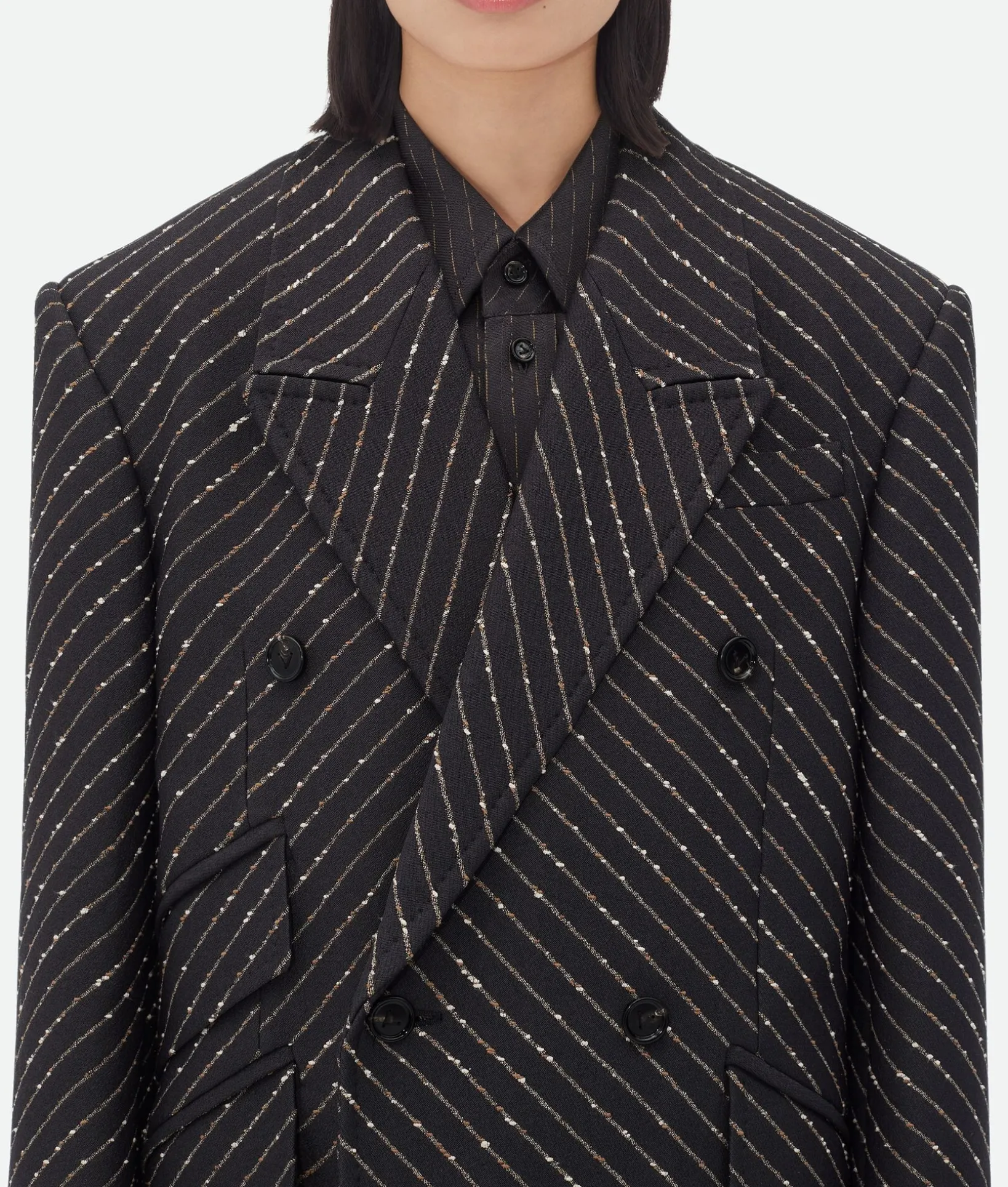 • Diagonal boucle pinstripe coat