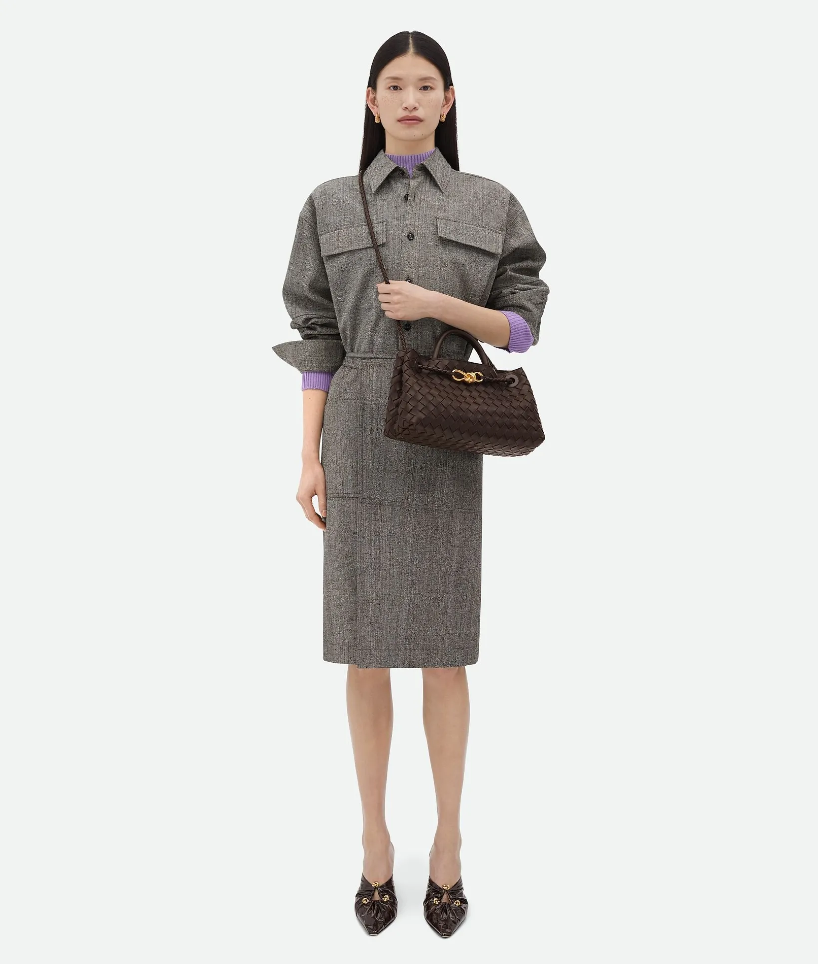 • East-West Intrecciato leather top handle bag with sliding cross-body strap