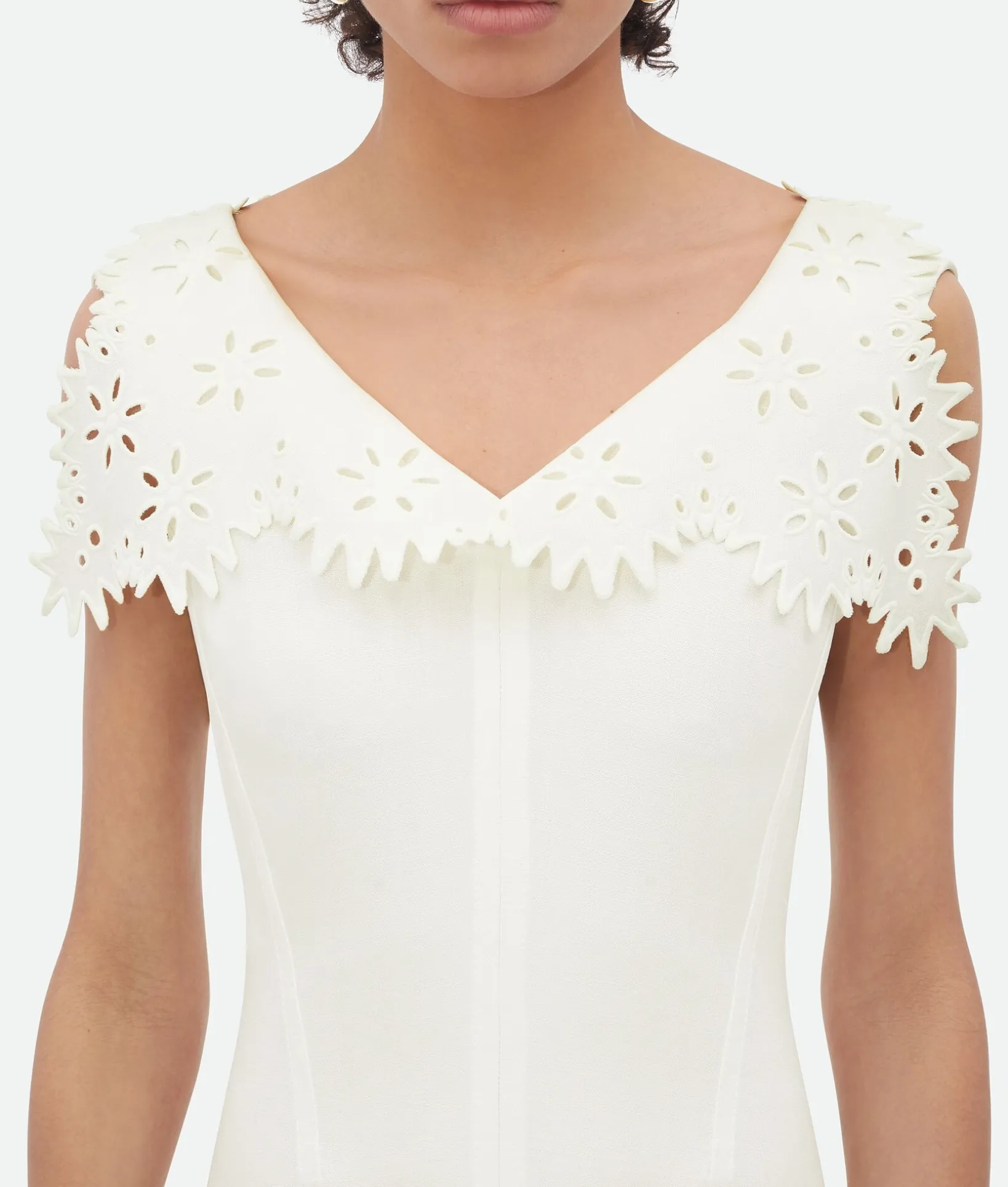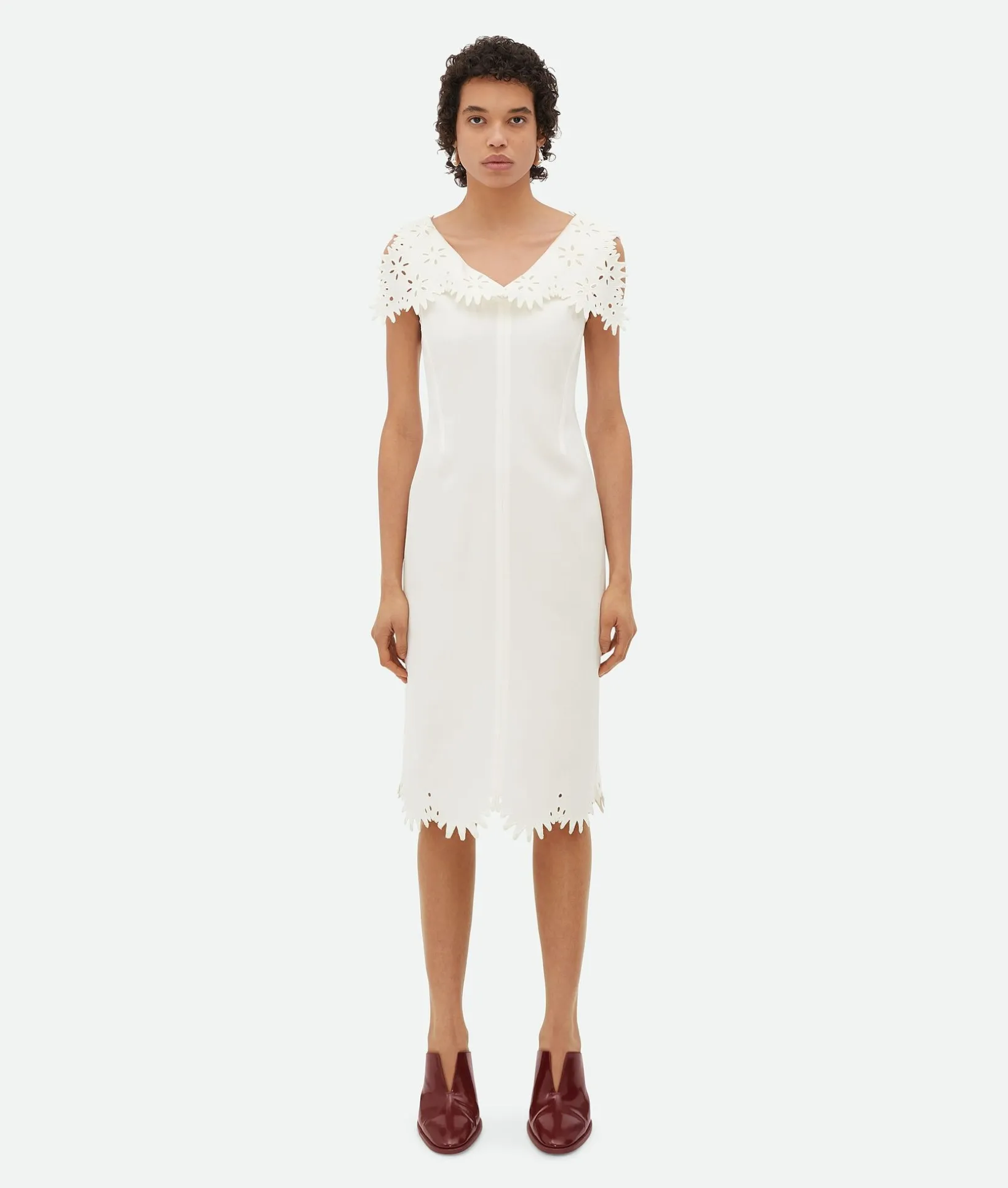 • English embroidery grainy viscose and silk midi dress